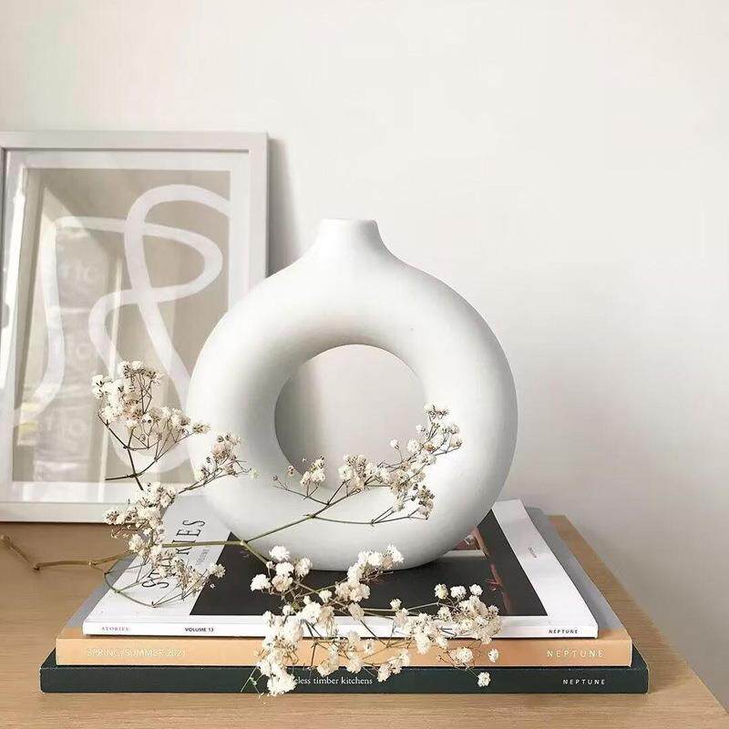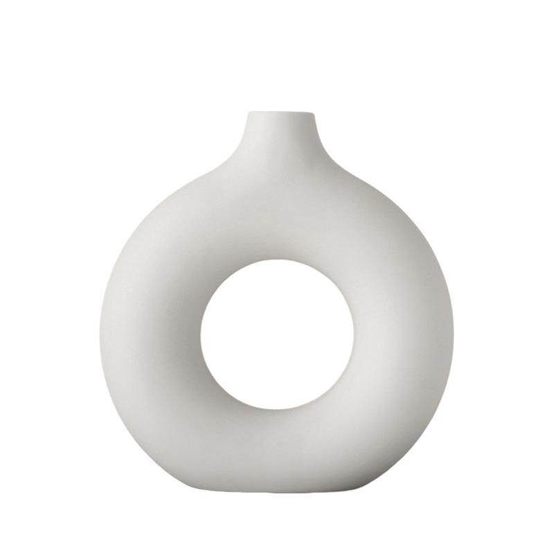 创意甜甜圈白色陶瓷花瓶摆件 客厅仿真花干花插花家居装饰品