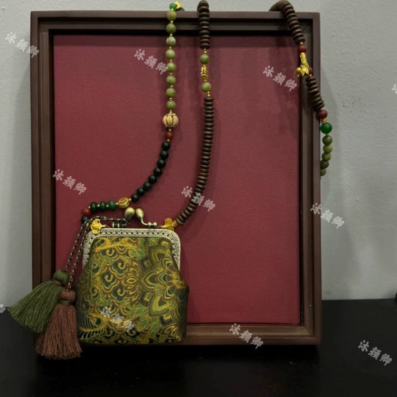 新中式国风复古菩提刺绣口红包多用斜挎链复古撞色国潮配饰礼物女
