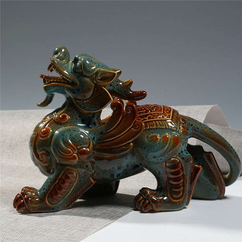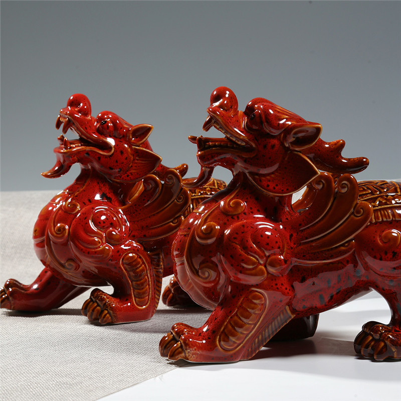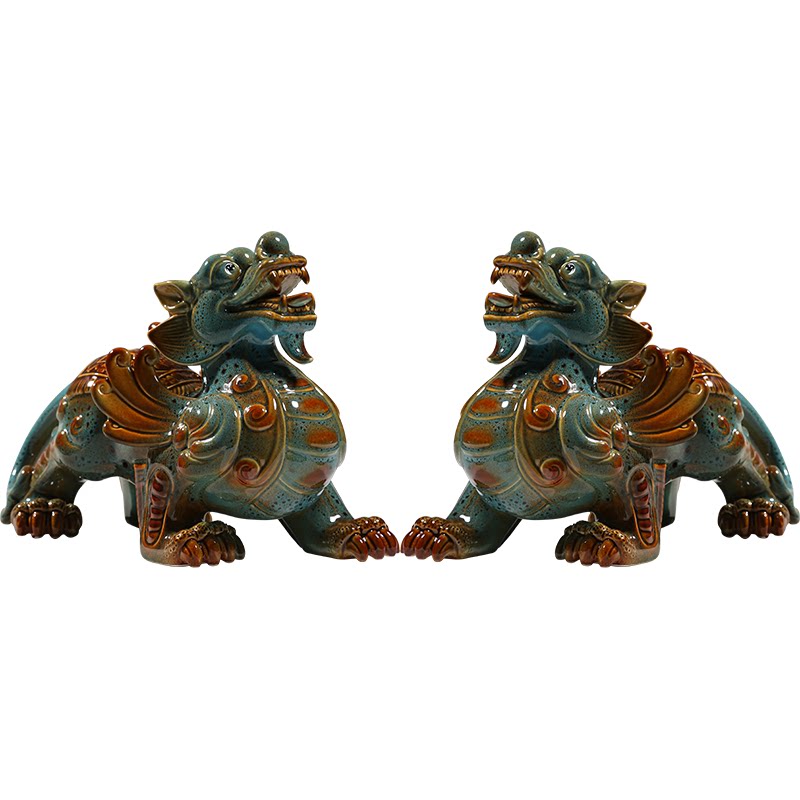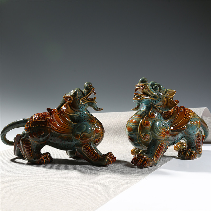 晟美陶瓷招财貔貅摆件有雌雄一对皮丘工艺品大号家居店铺装饰摆件
