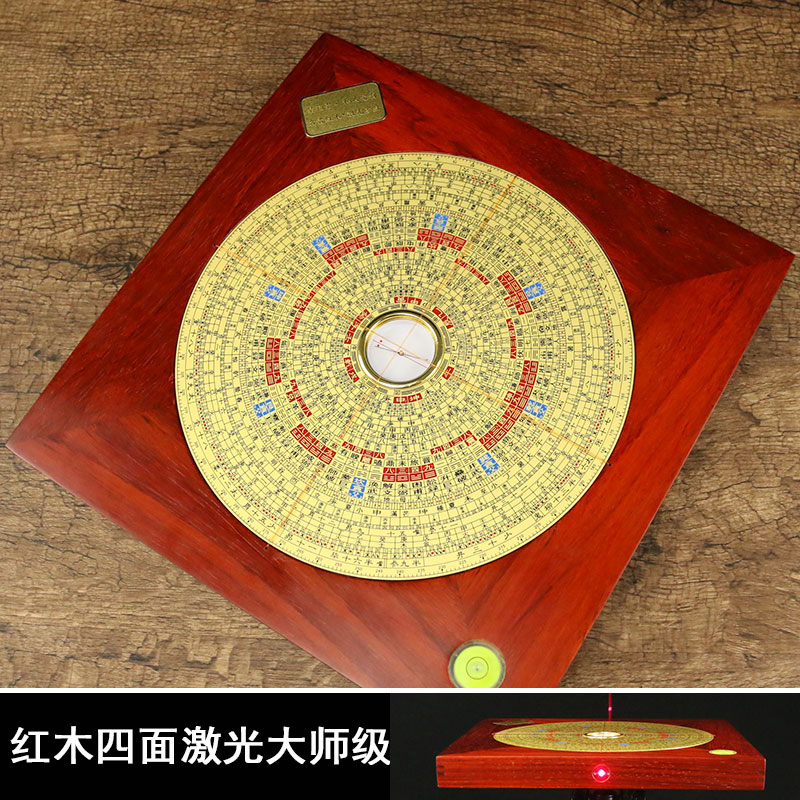 红木四面红外线激光罗盘随身风水盘高精度专业八寸综合盘三元三合