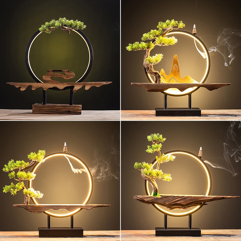 新中式禅意摆件底座风化实木w家居摆件客厅办公室玄关书房铁艺灯