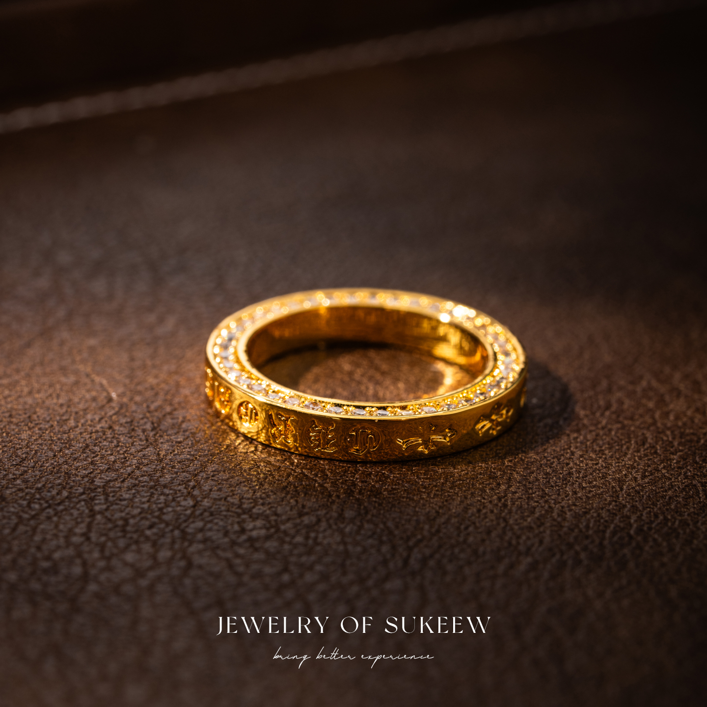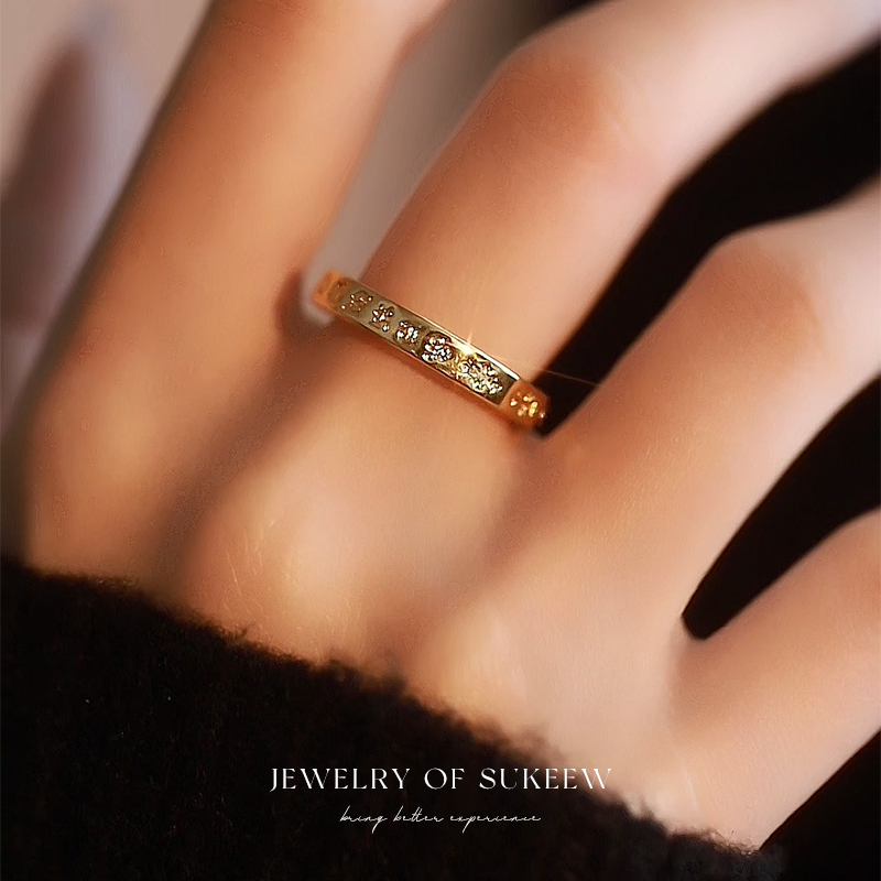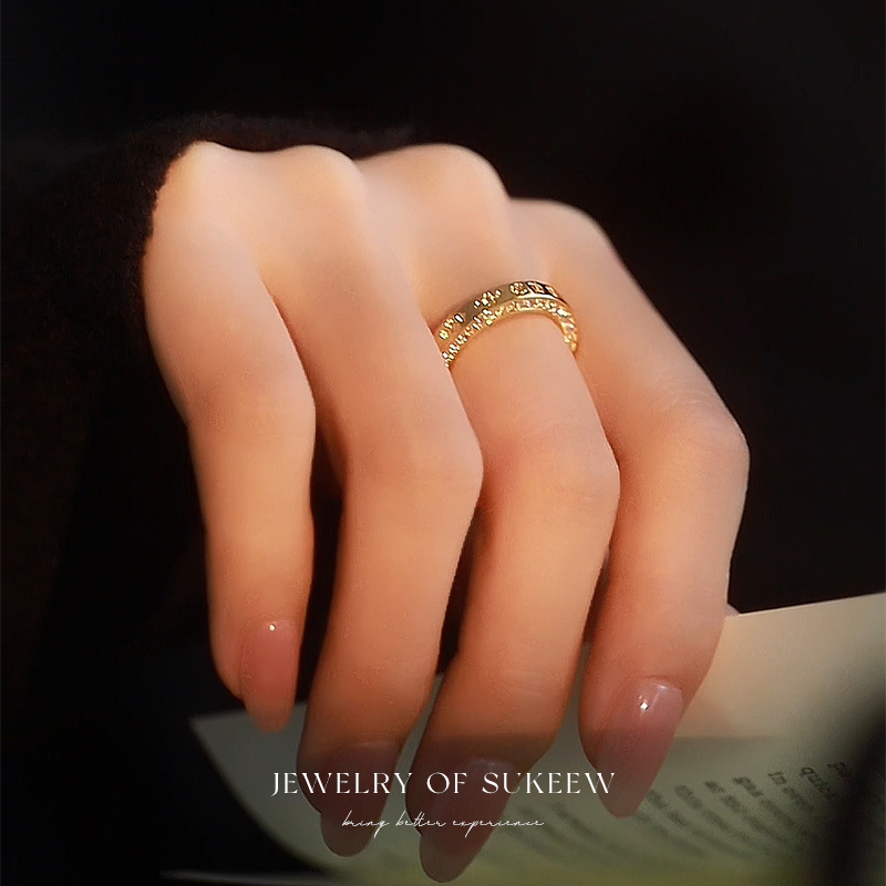 SUKEEW/酥可 「永恒」潮流十字复古闪亮戒指新中式高级感素圈指环