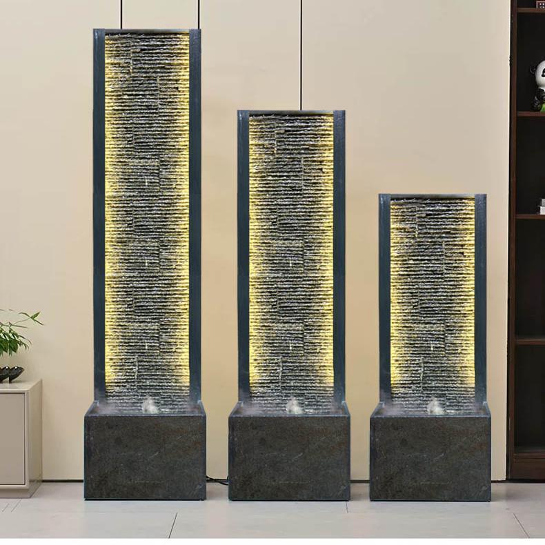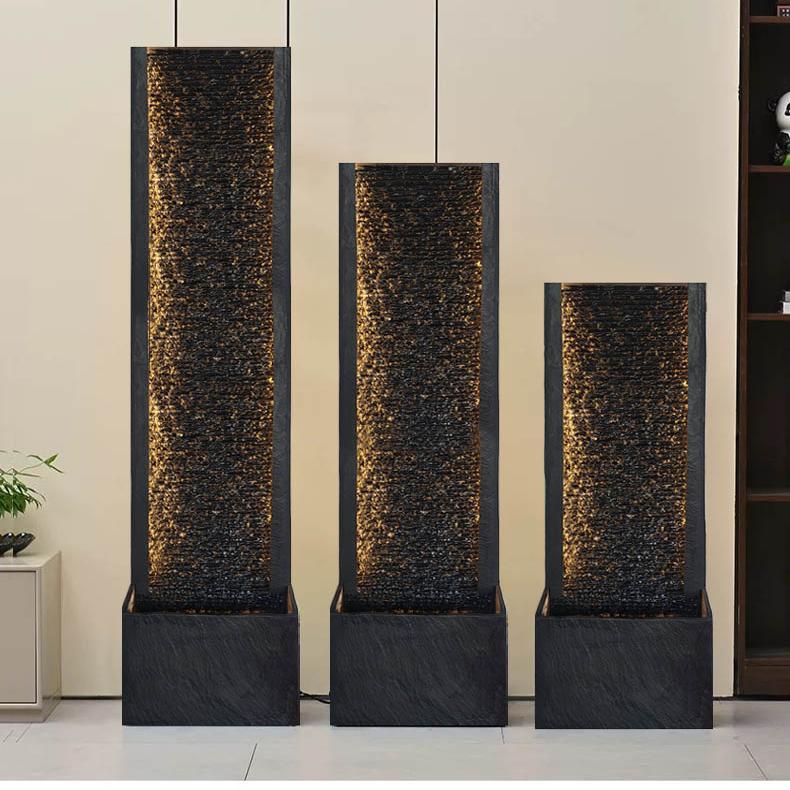 现代中式大型文化石水幕墙客厅落地摆件水景流水墙屏风喷泉鱼缸