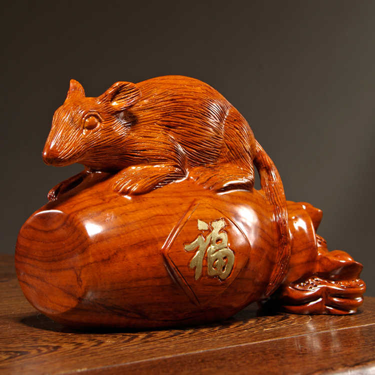 花梨木雕老鼠摆件实木十二生肖鼠红木家居客厅办公室装饰工艺礼品