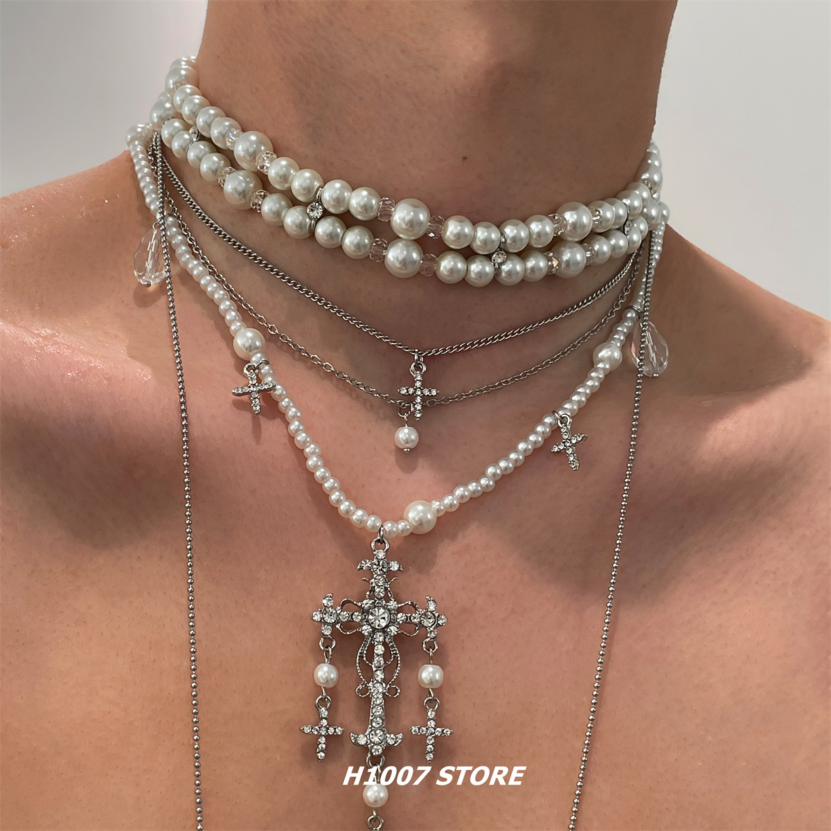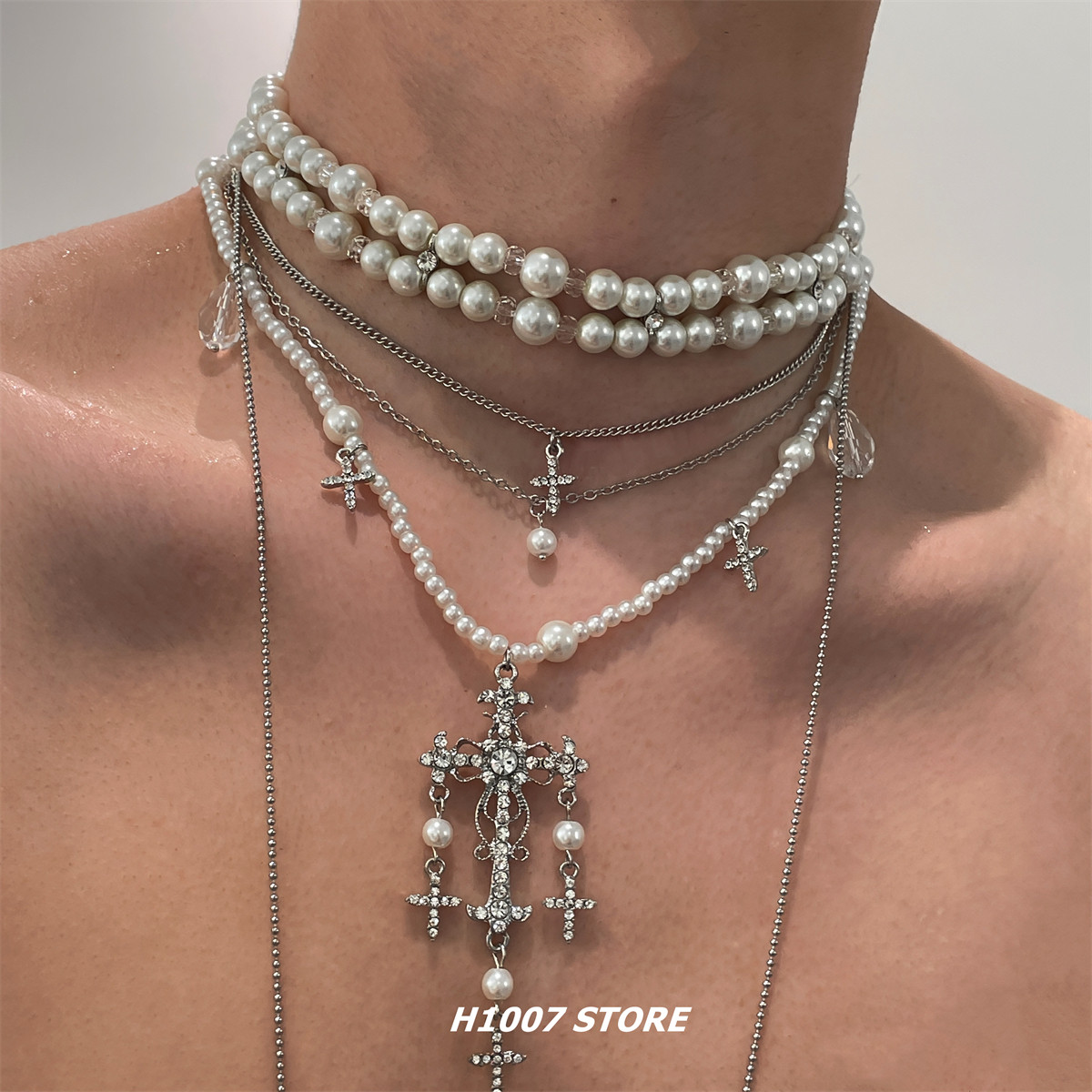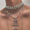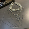 高级感珍珠水滴多层叠戴男款项链女小众轻奢颈链嘻哈choker锁骨链