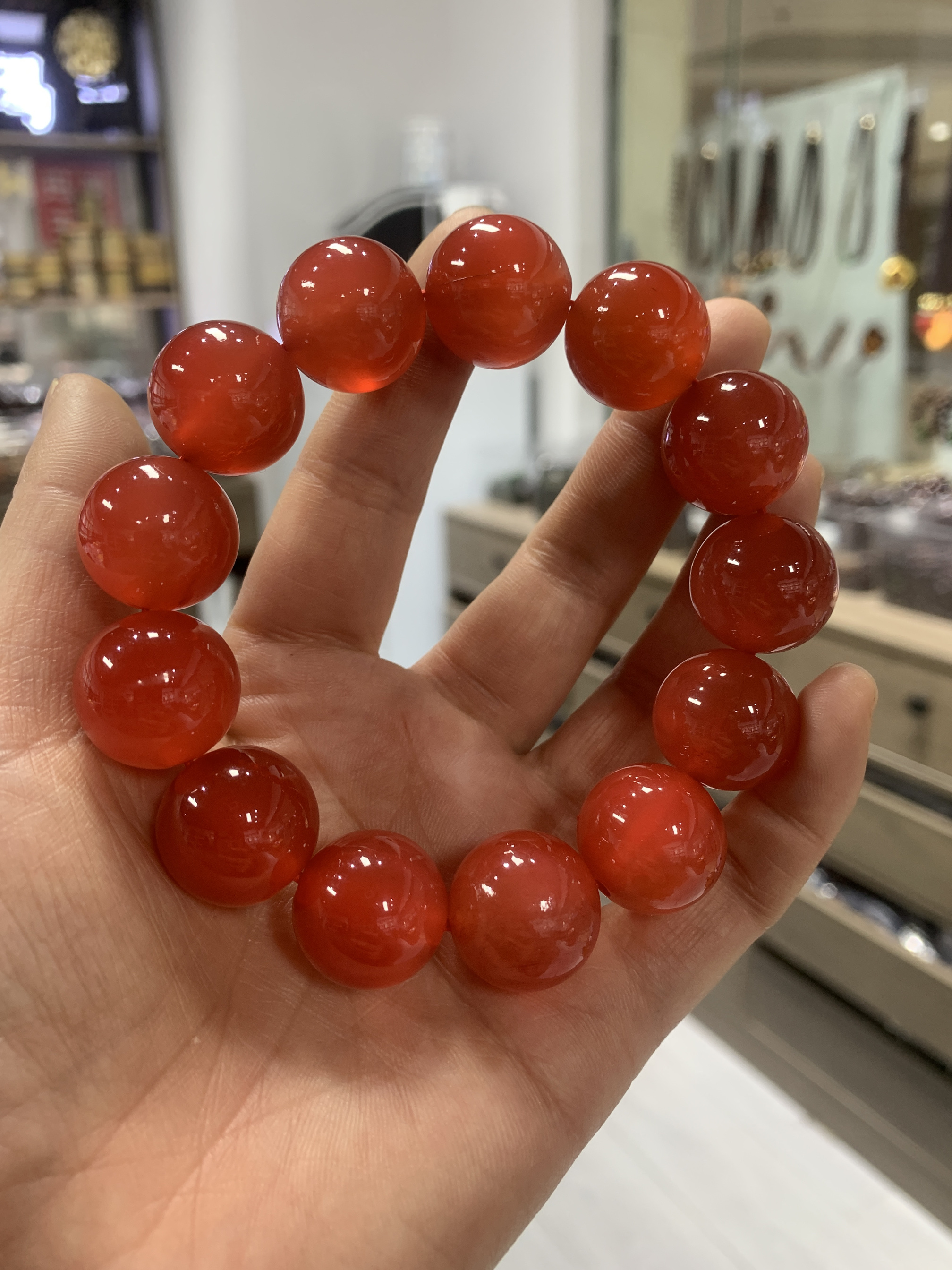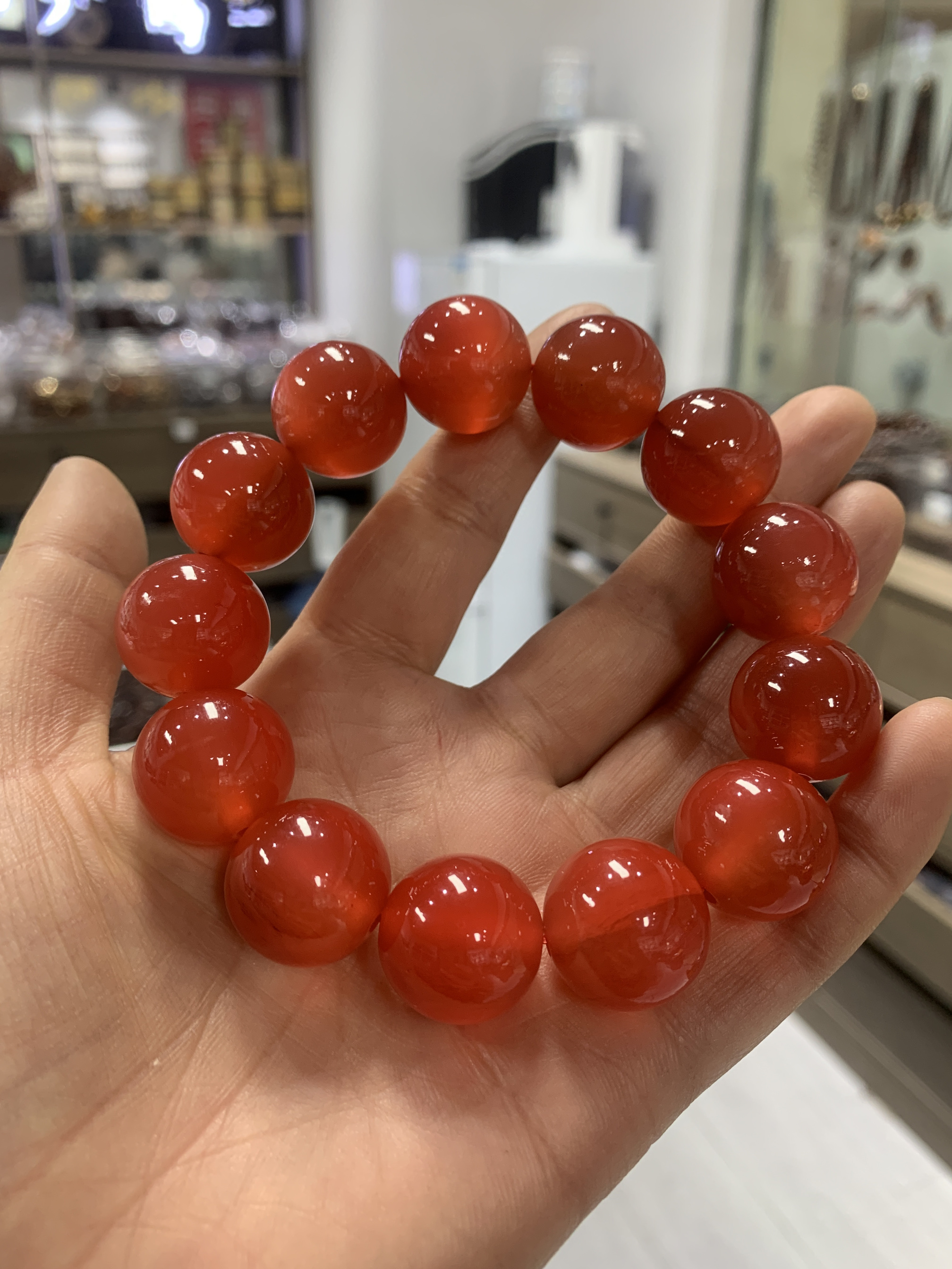 纯天然樱桃红鱼惊石手串男女同款正宗青鱼石手工打磨抛光精品手链