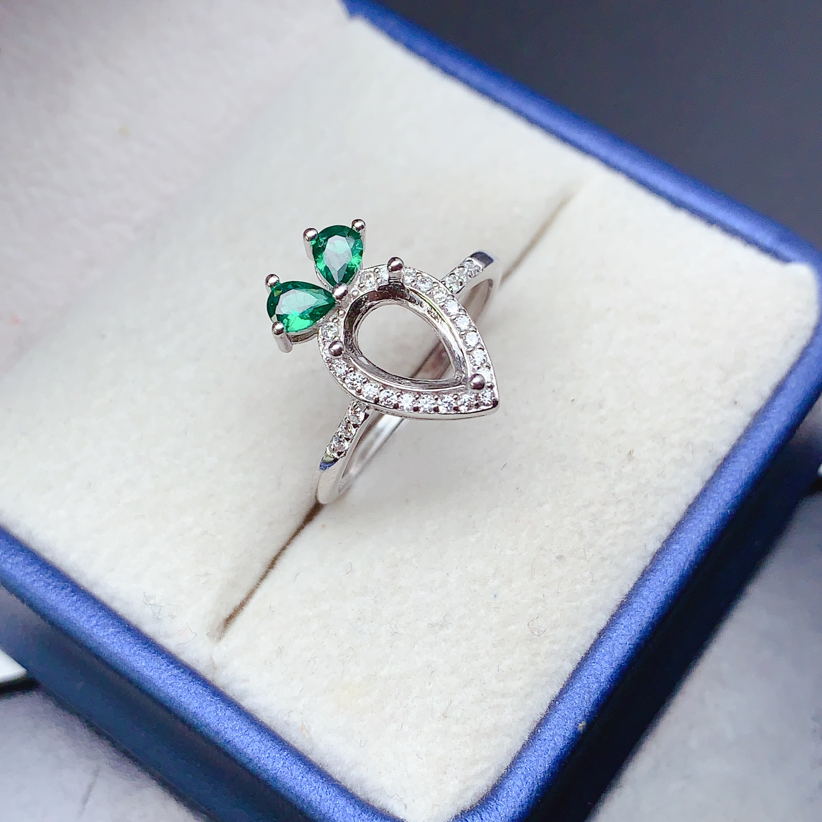 全新S925纯银微镶个性萝卜设计活口 6*9mm 水滴戒指空托