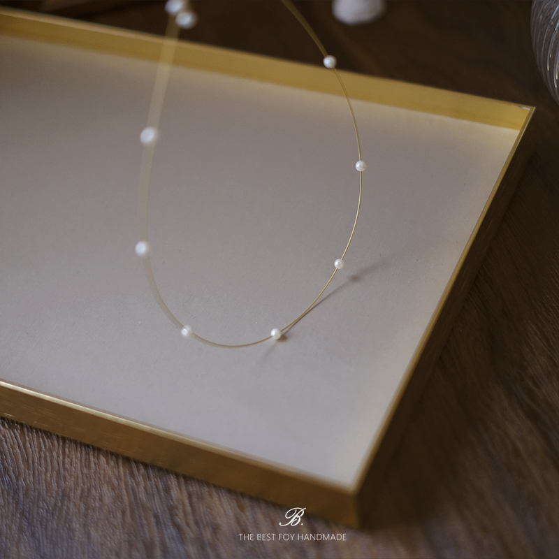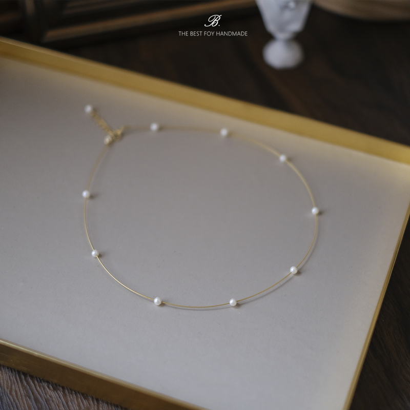 美国14K包金天然淡水小珍珠满天星锁骨链女不掉色金线悬浮项链