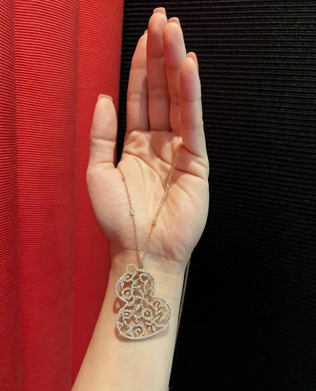 老钱风秋冬大号夸张葫芦毛衣链长款项链玫瑰金色国风配饰奢华