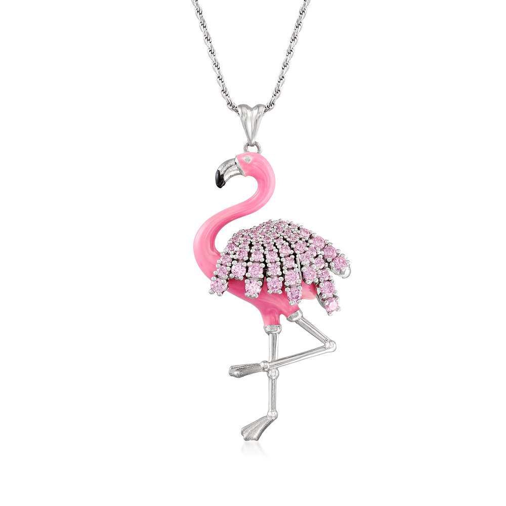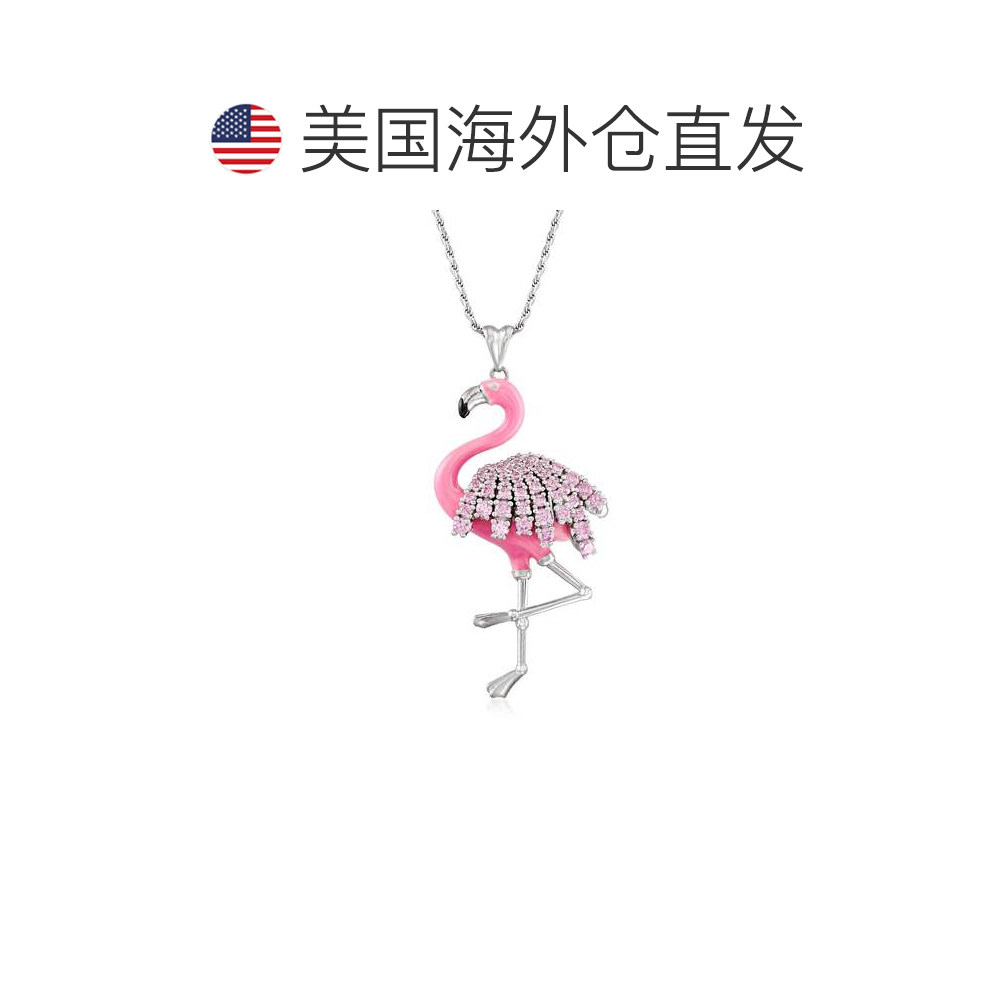 自营 Ross-Simons 925 纯银粉红色 CZ 火烈鸟吊坠项链配粉色珐琅