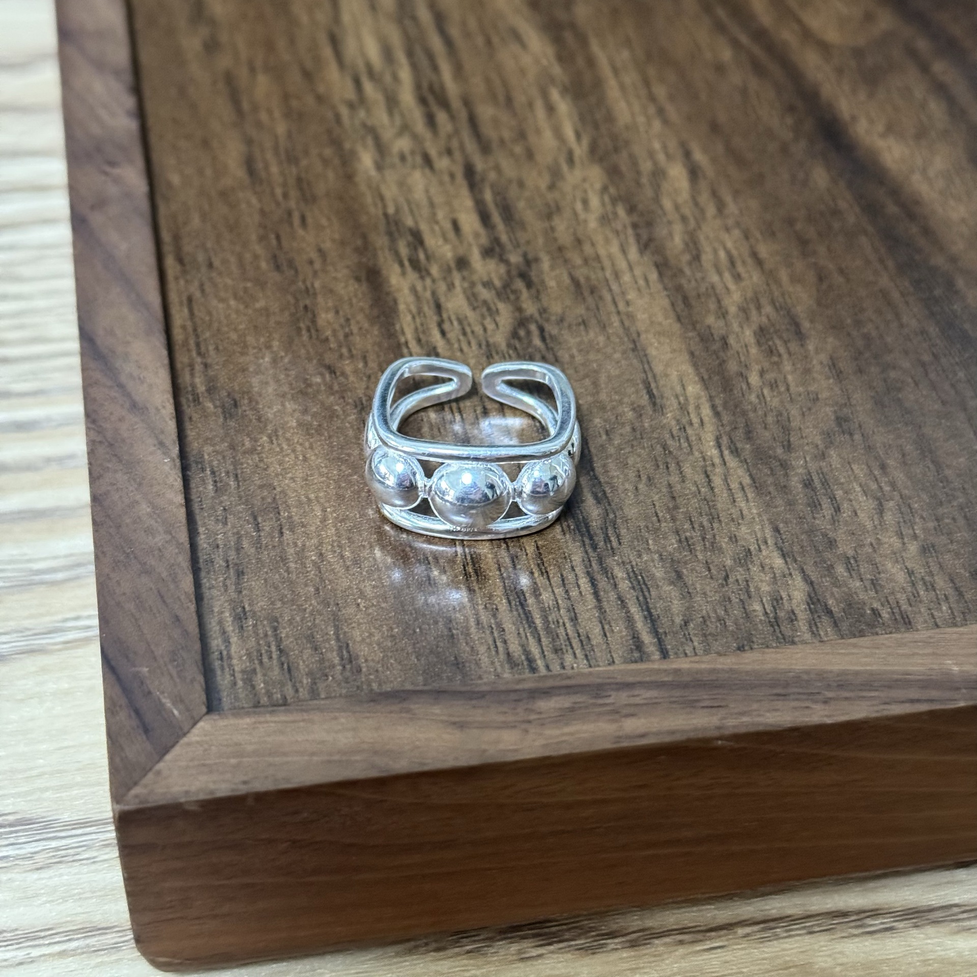 复古珠珠镂空戒指女时尚个性重工设计感开口指环小众ins风食指戒