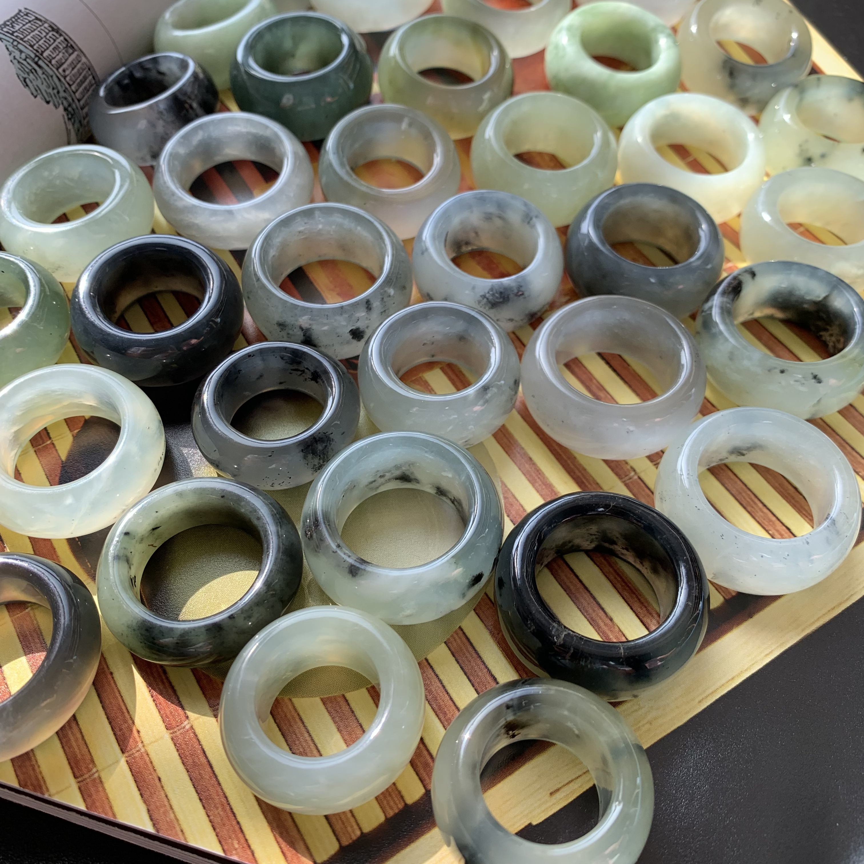 【内径16】F6E天然岫玉青提手墨古风戒指胖圆指环一物一图