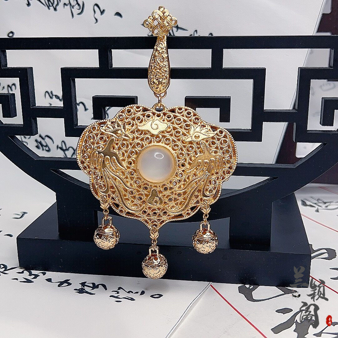 原创汉服配饰霞帔坠双面镂空桃心凤凰花纹霞帔坠明制宋制霞帔挂饰