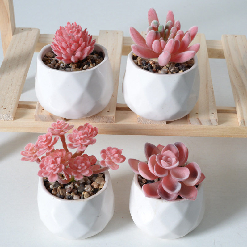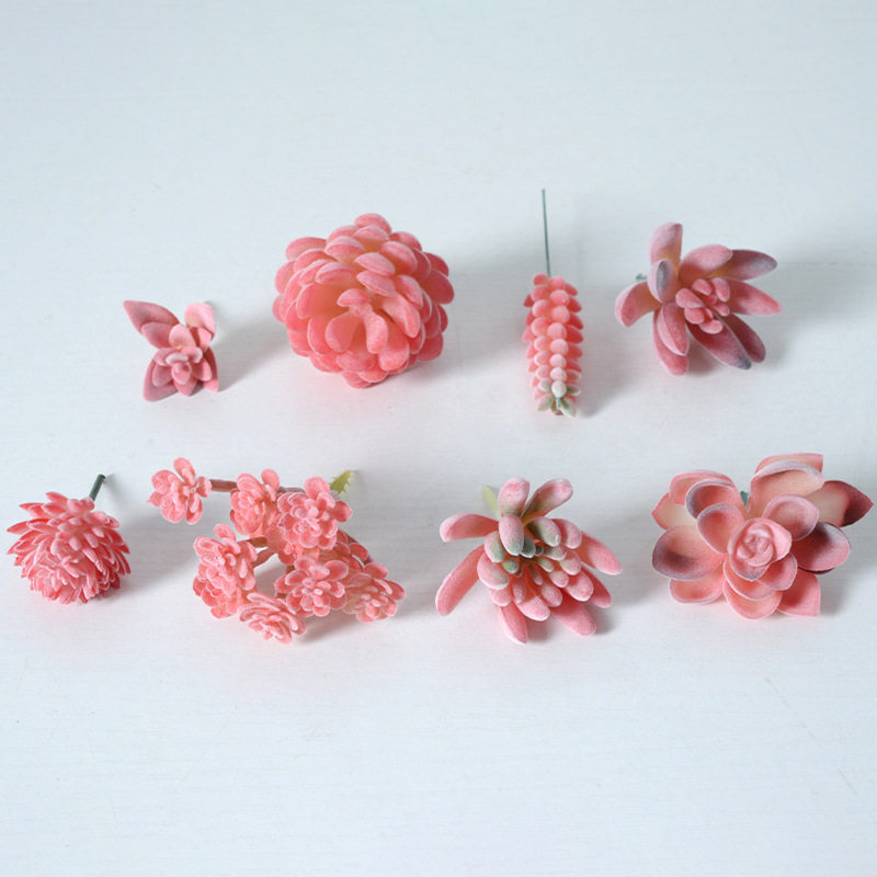 红色系植绒仿真多肉植物绿植 家居装饰迷你摆件组合人造盆栽盆景