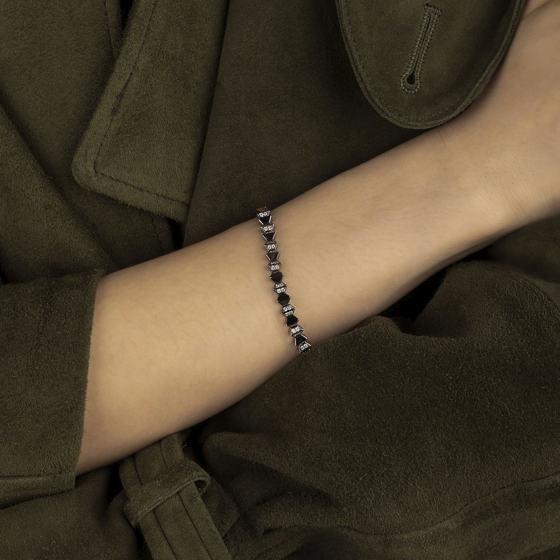 [新品]APM Monaco深灰色Up and Down手链黑色撞色手饰波浪几何