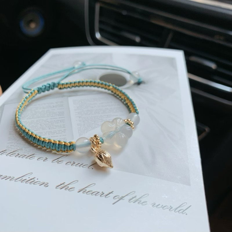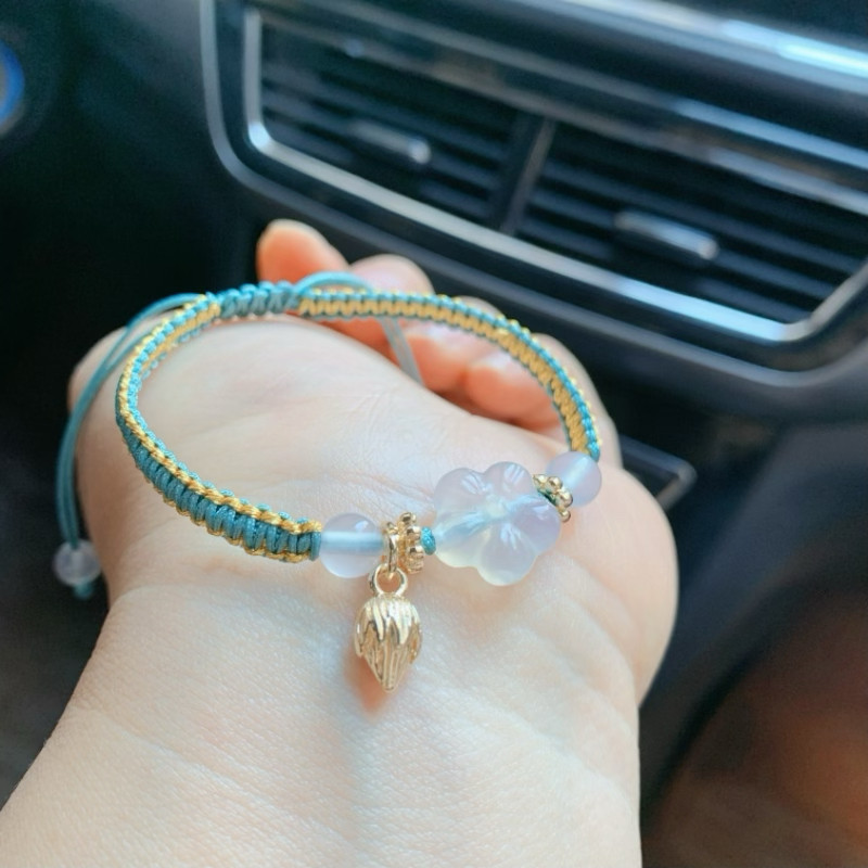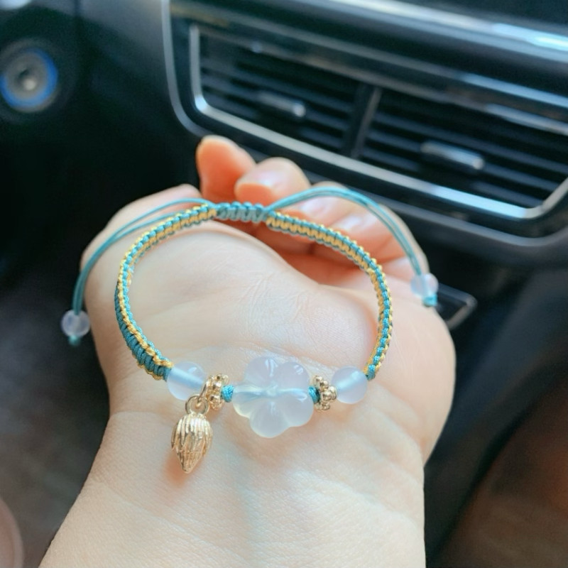 天然高冰玉髓白玛瑙梅花手链女士中国风可调节编织手绳礼物