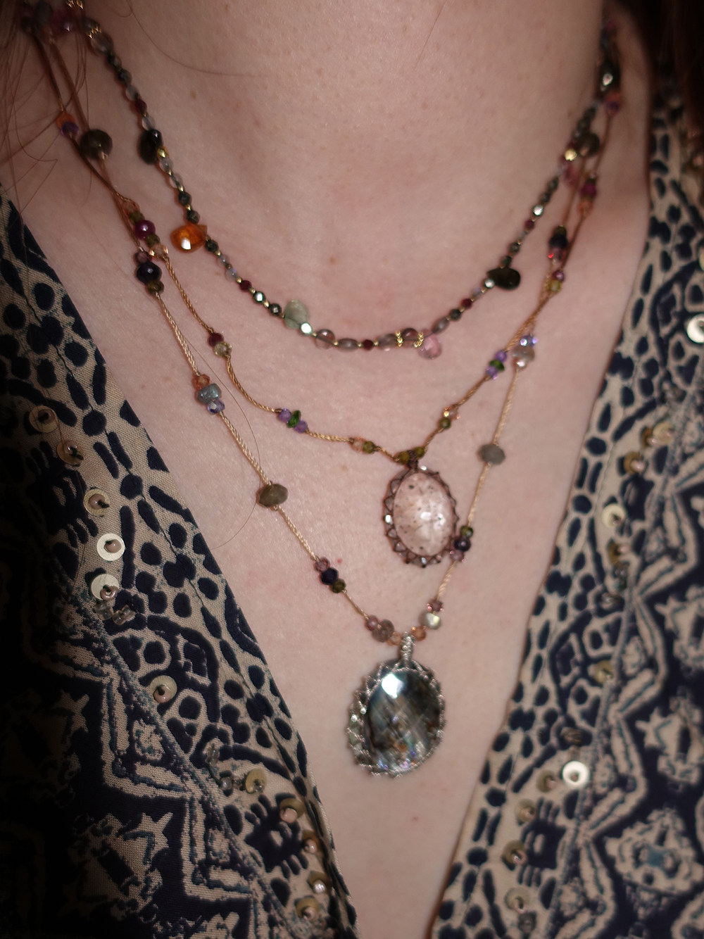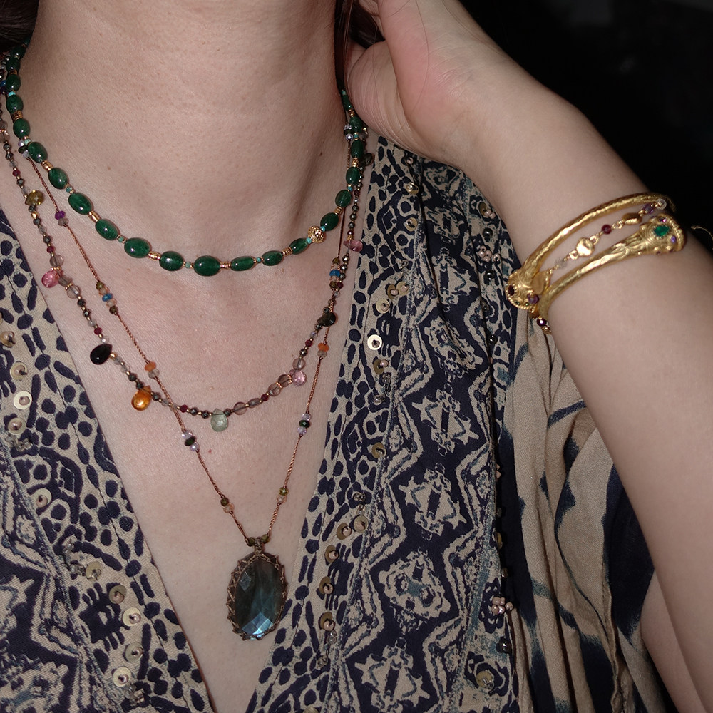 水滴碧玺与烟晶石榴石多元素可调节编绳项链