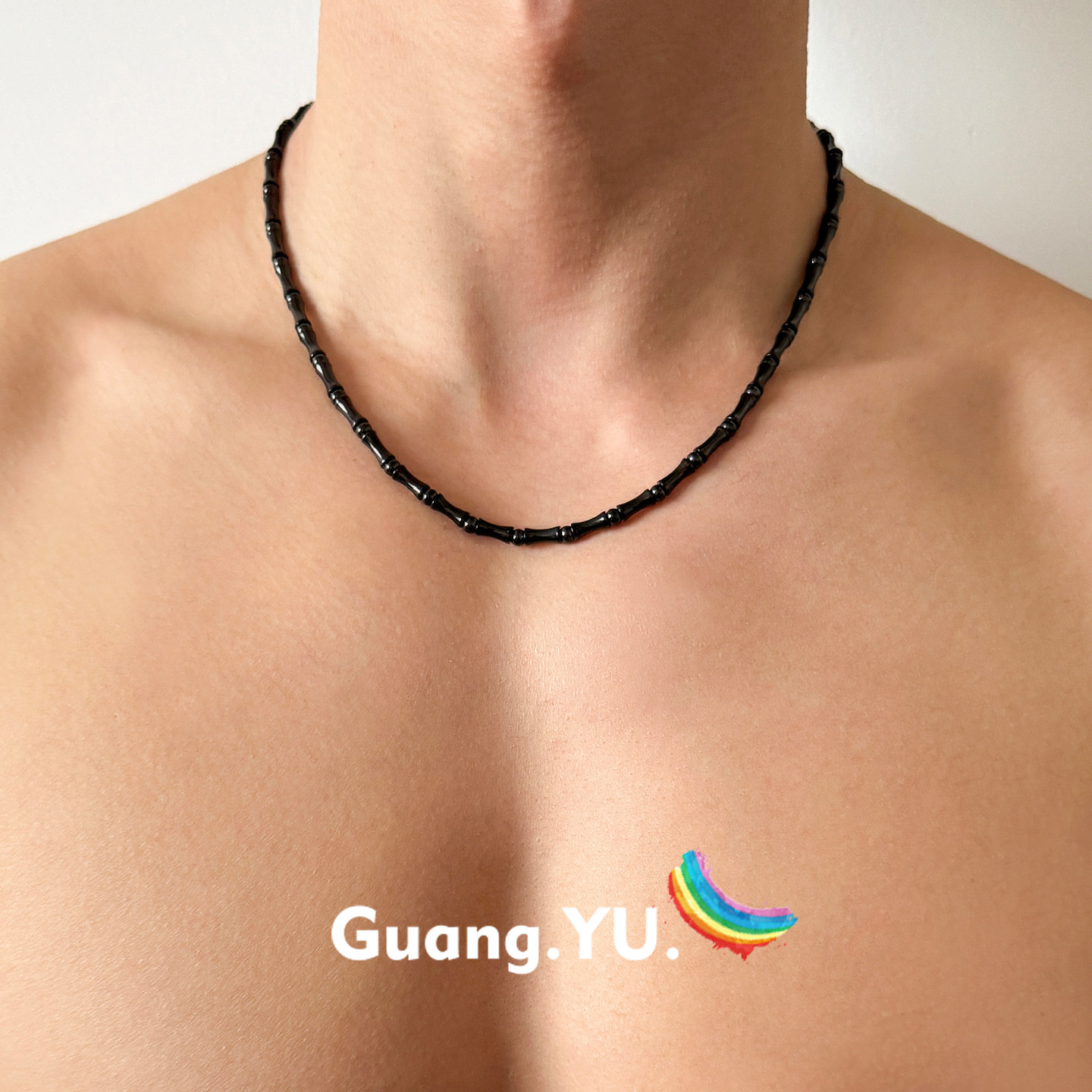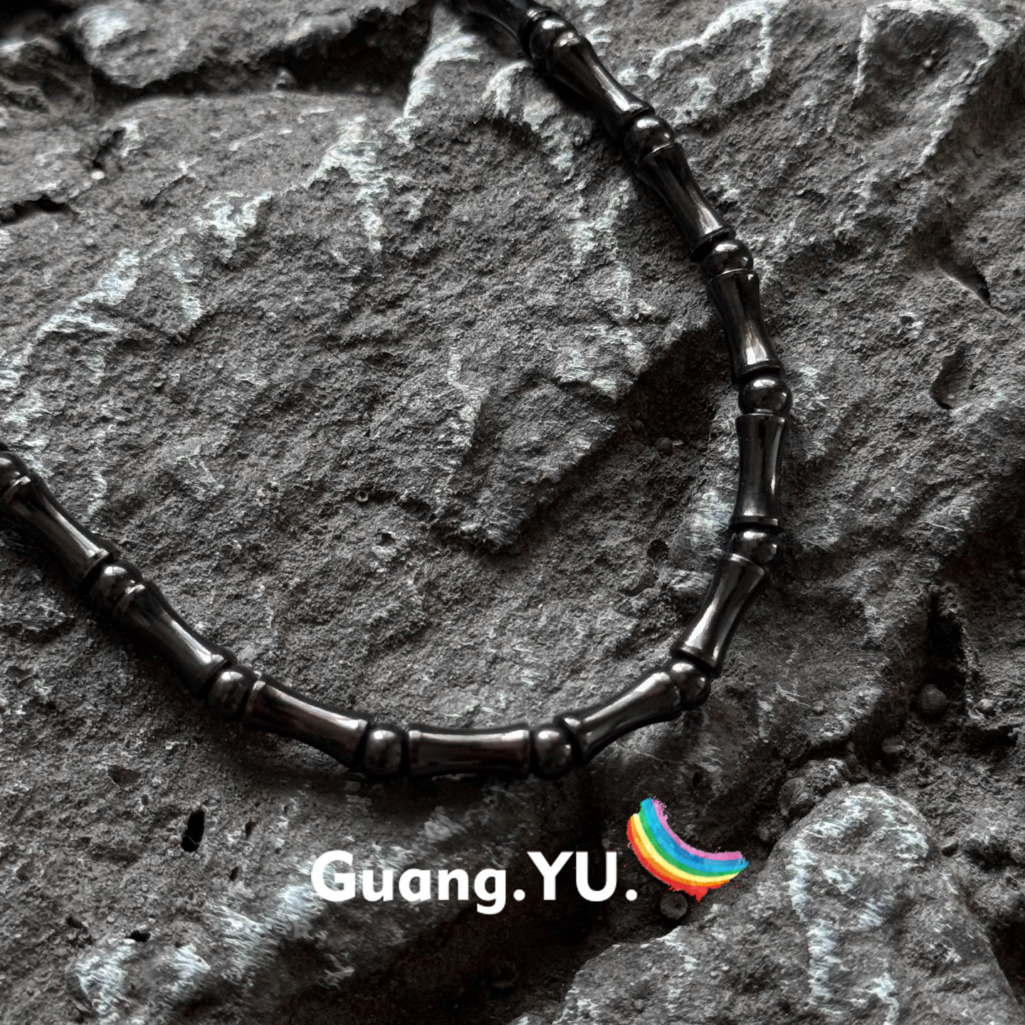 GuangYu黑色竹节钛钢项链男新中式复古小众简约素链百搭锁骨链潮