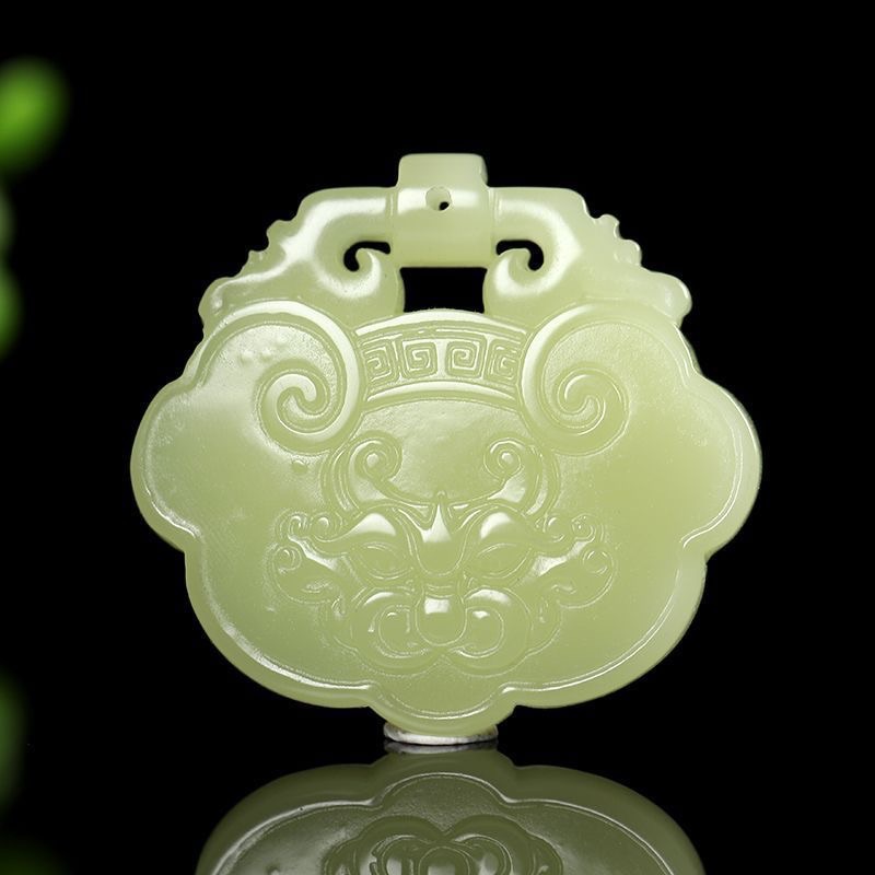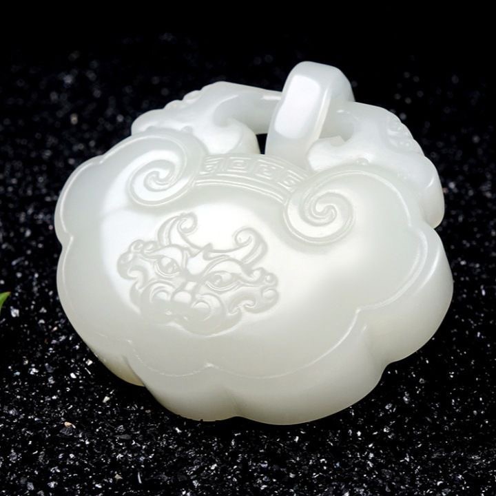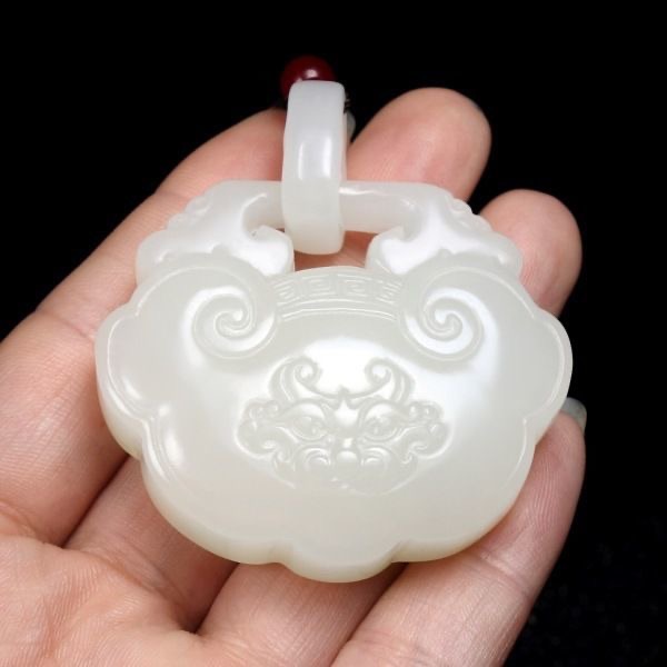 新品和田色平安锁吊坠男女吉祥饰挂件玉石吊坠项链祥云复古平安