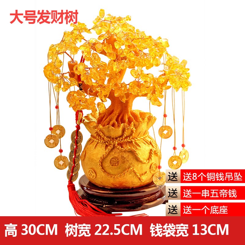 发财树招财摆件电视酒柜餐边柜子黄水晶摇钱树家居客厅聚财装饰品