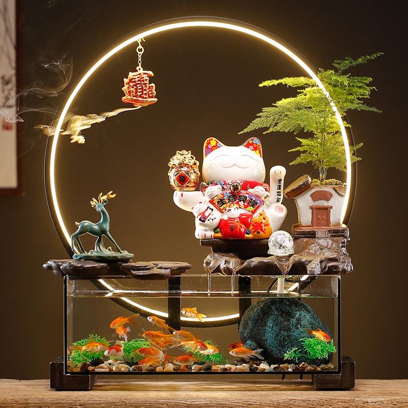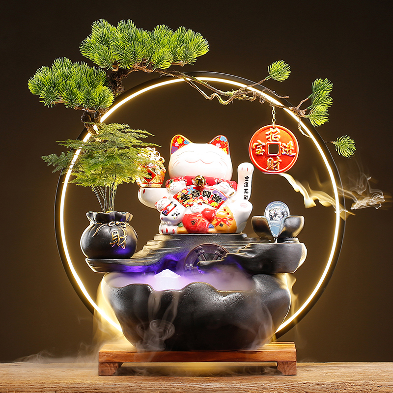 开业送礼物招财猫摆件自动招手前台入户客厅办公室循环流水装饰品