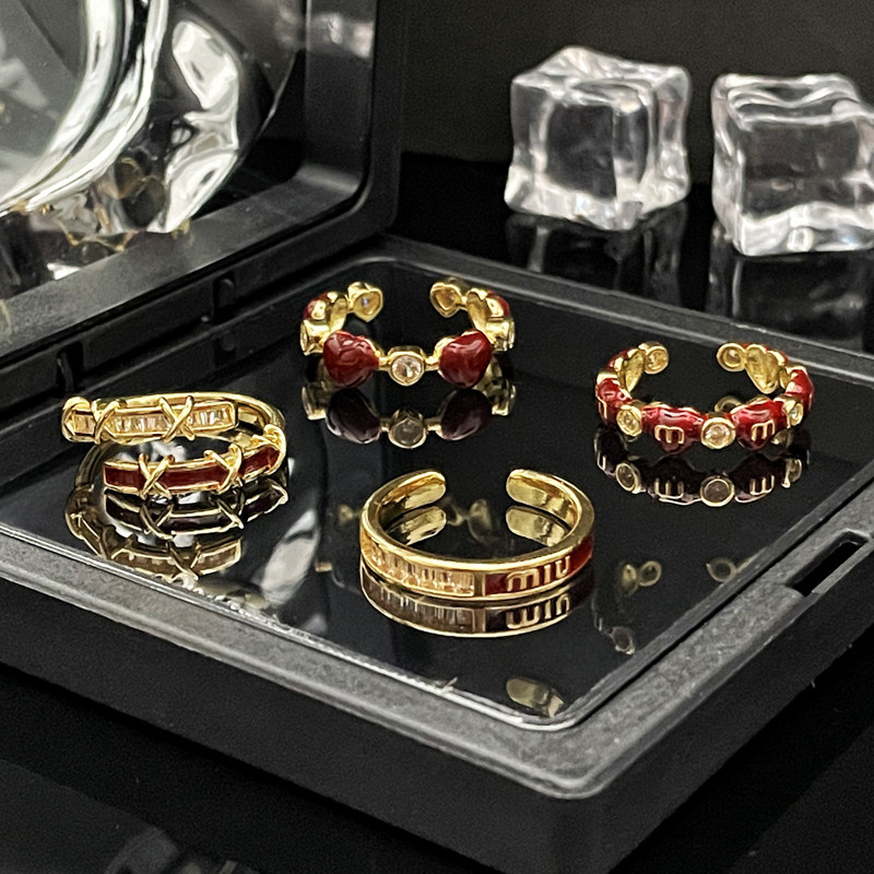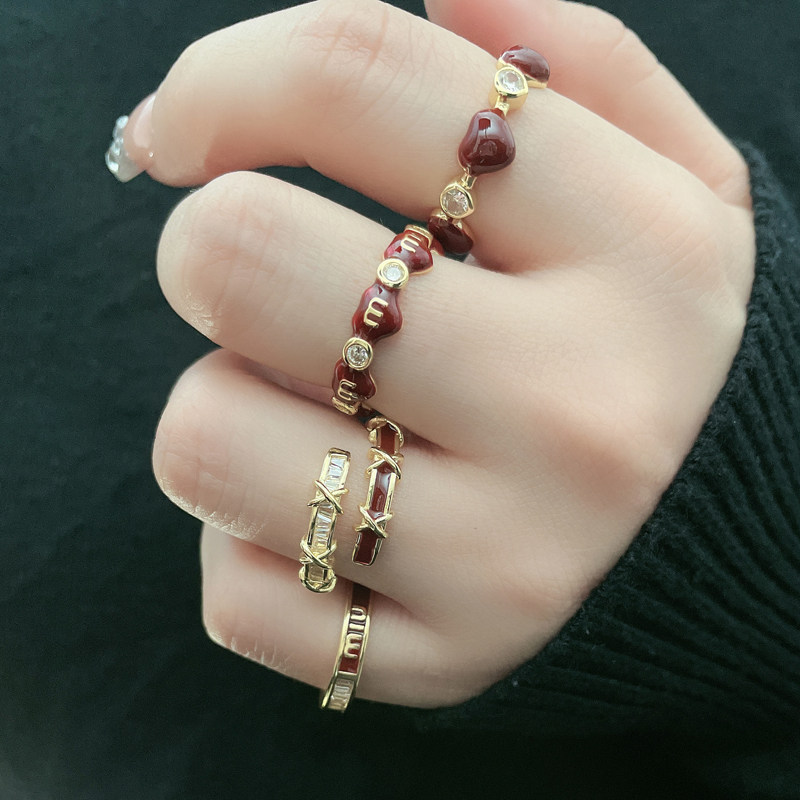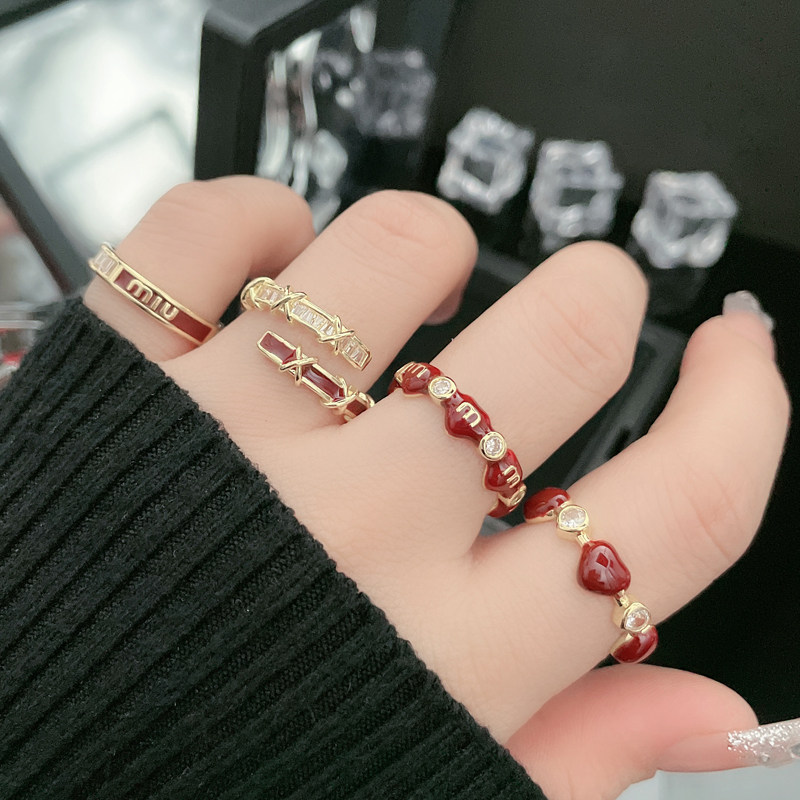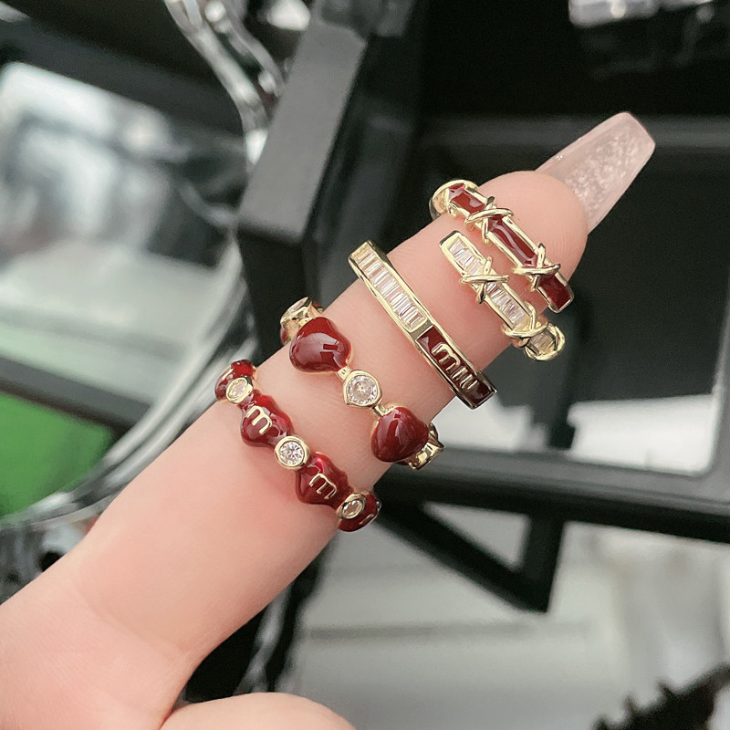 复古新款红色滴釉爱心开口戒指女小众轻奢个性高级感甜酷百搭指环