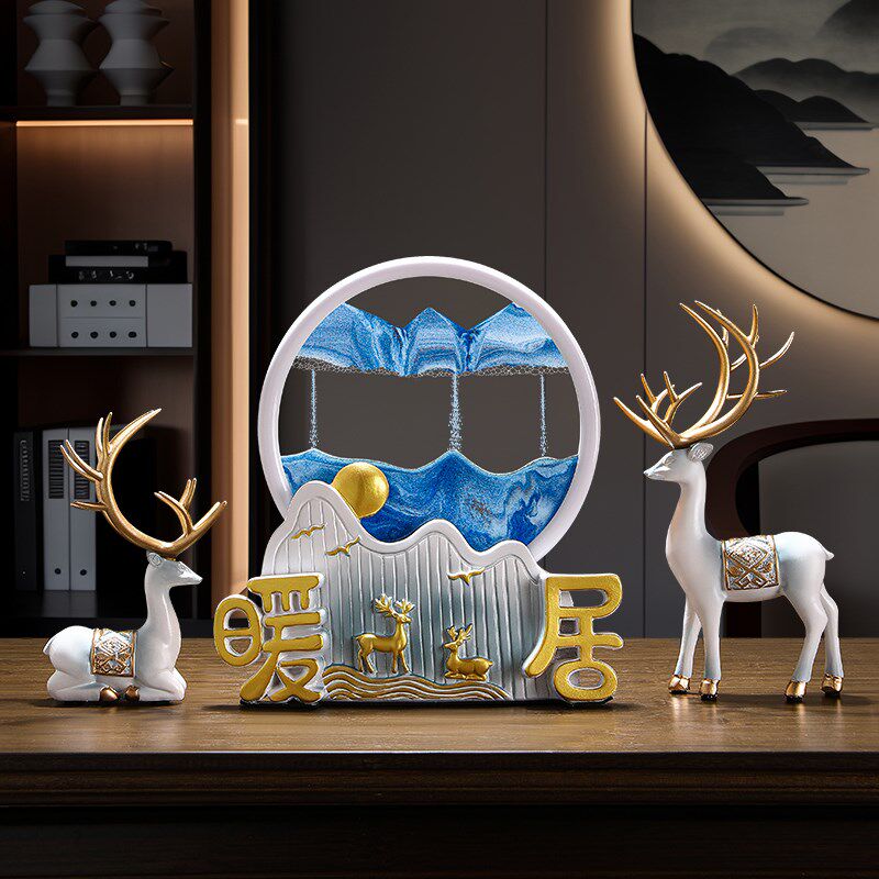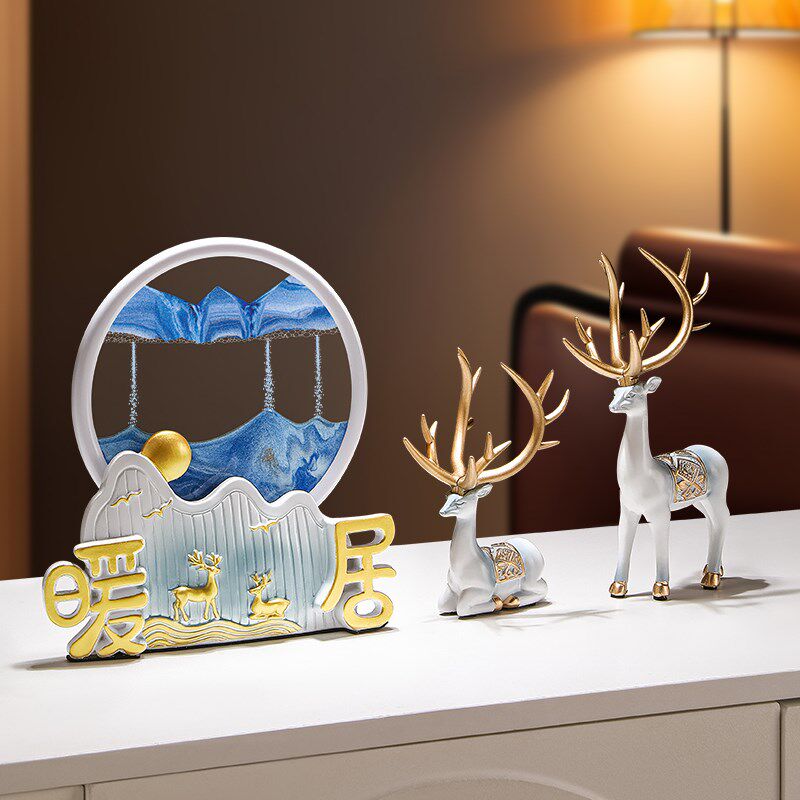 招财鹿流沙画摆件客厅家居酒柜装饰品电视柜玄关新房乔迁新居礼品