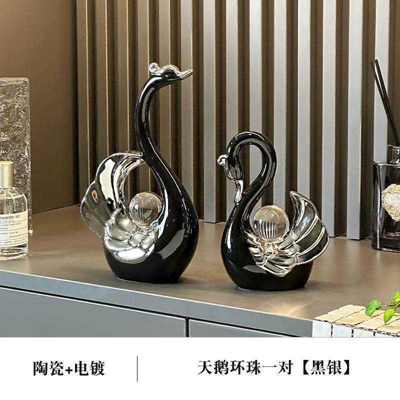正品高颜值晶球情侣天鹅摆件现代奢家玄轻关客厅酒柜水电视柜居装