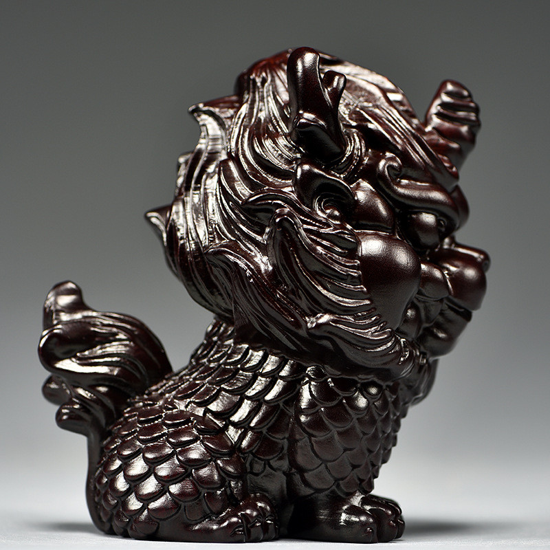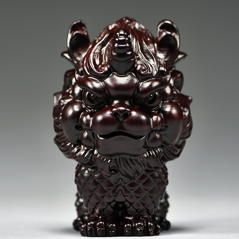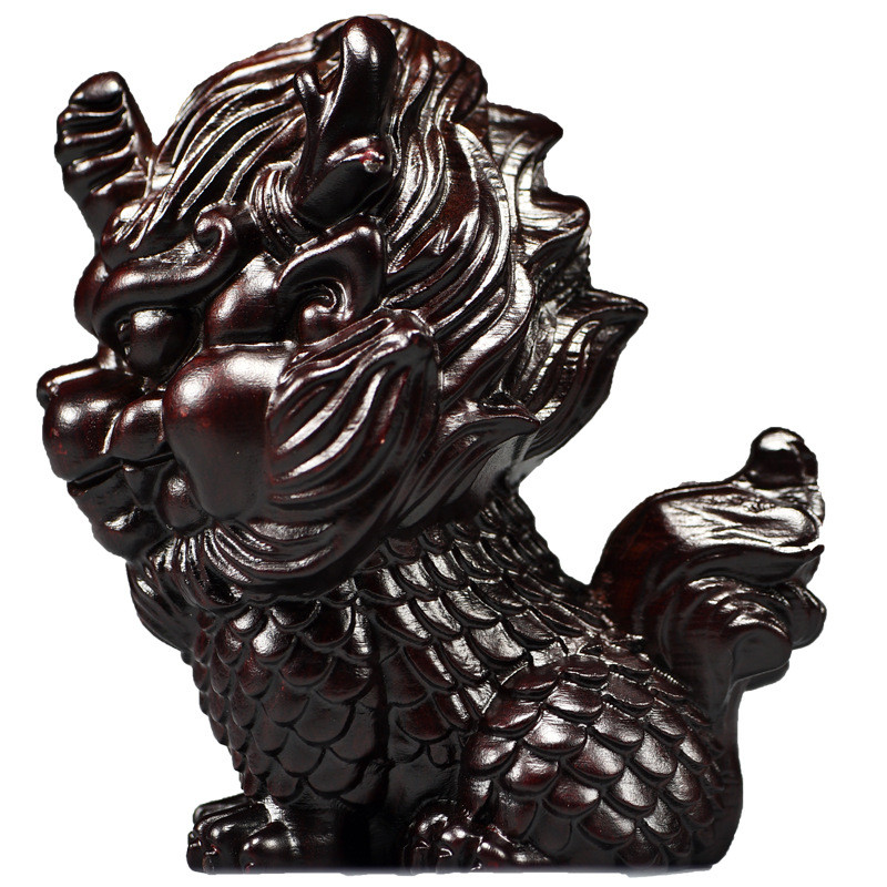 热销黑檀木雕麒麟摆件桌面木头卧室家用家居玄关一对装饰店铺开业