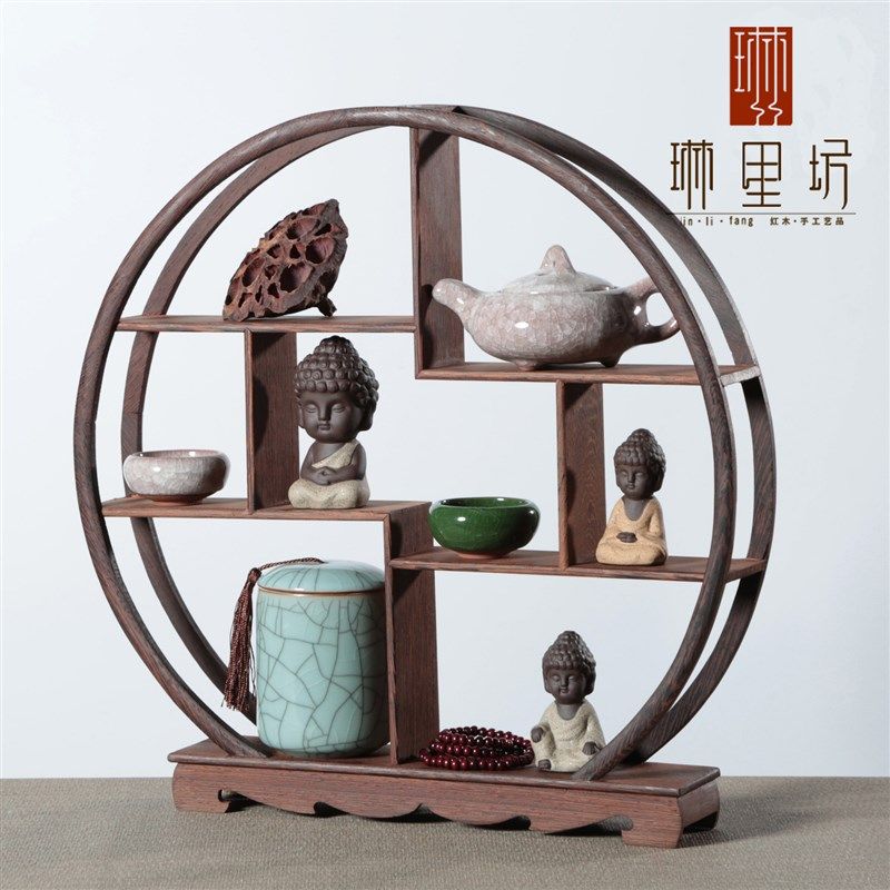 博古架圆形实木中式展示柜隔断简约现代茶具架鸡翅木Y多宝阁电视