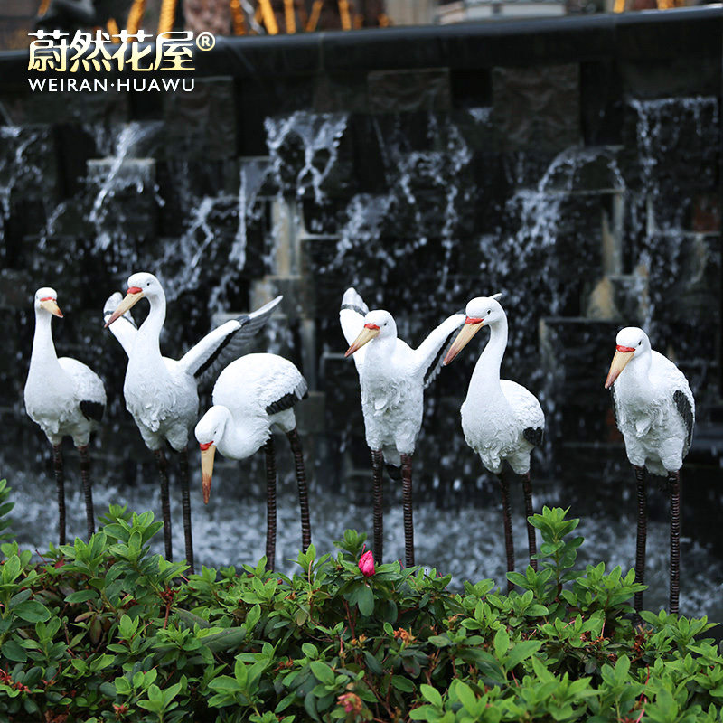 户外花园鱼池装饰仿真动物树脂白鹭庭院假山造景仙鹤摆件室外水池