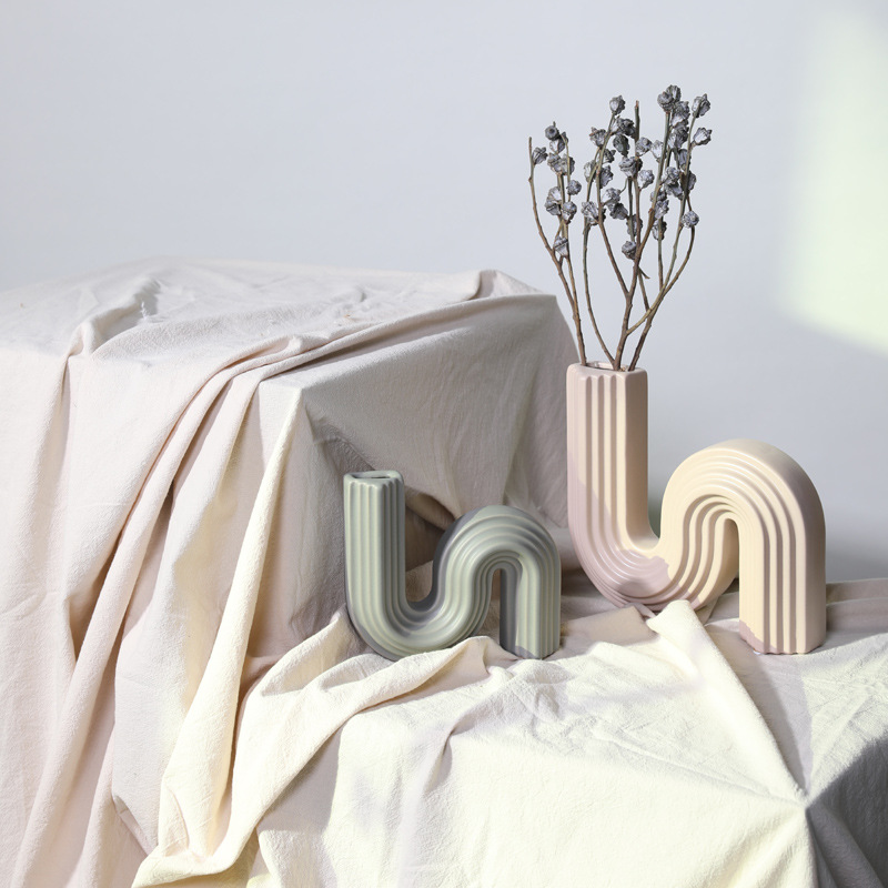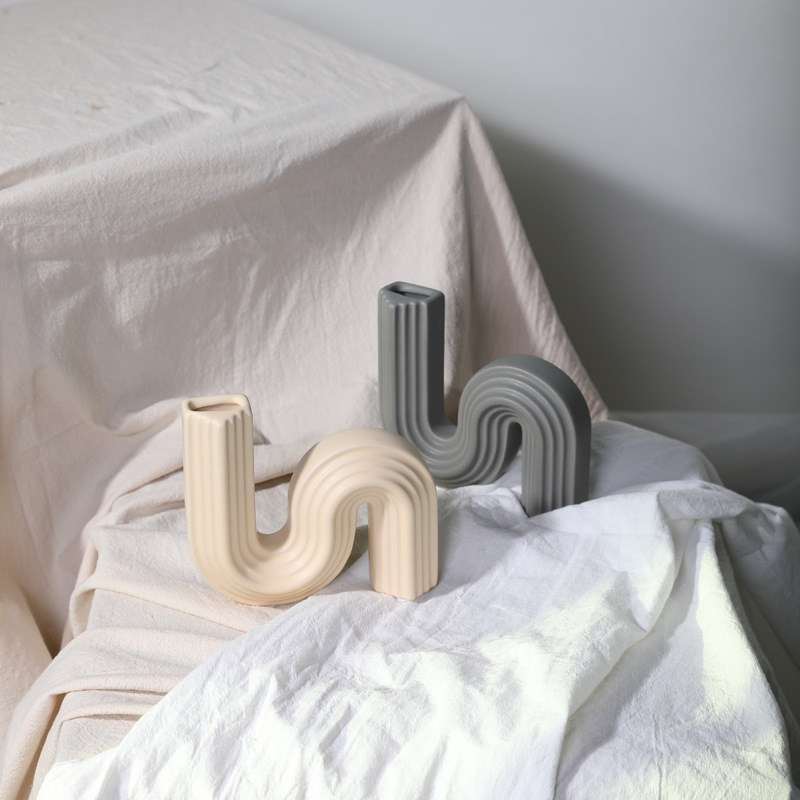 ins小众几何艺术陶瓷花瓶插花干花花器 创意s型家居软装饰品摆件