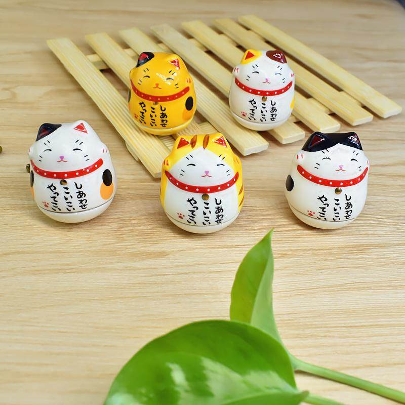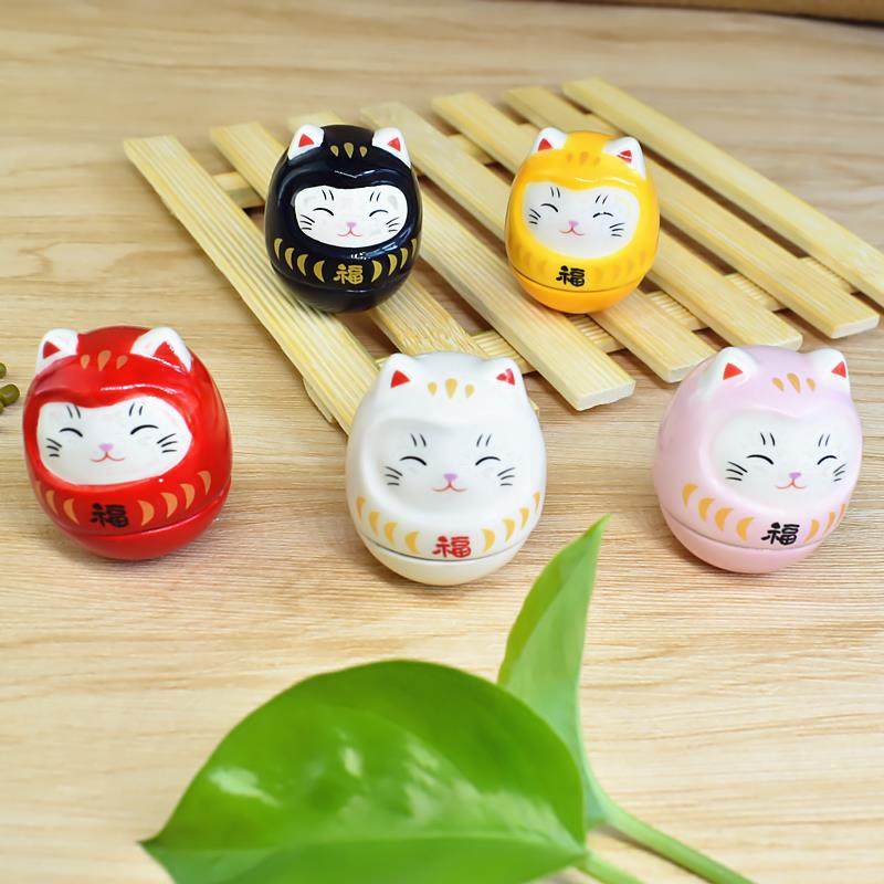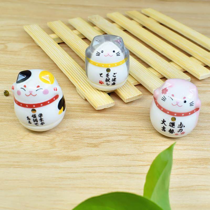 创意日式招财猫不倒翁摆件 陶瓷猫咪桌面装饰礼品 迷你房间摆设