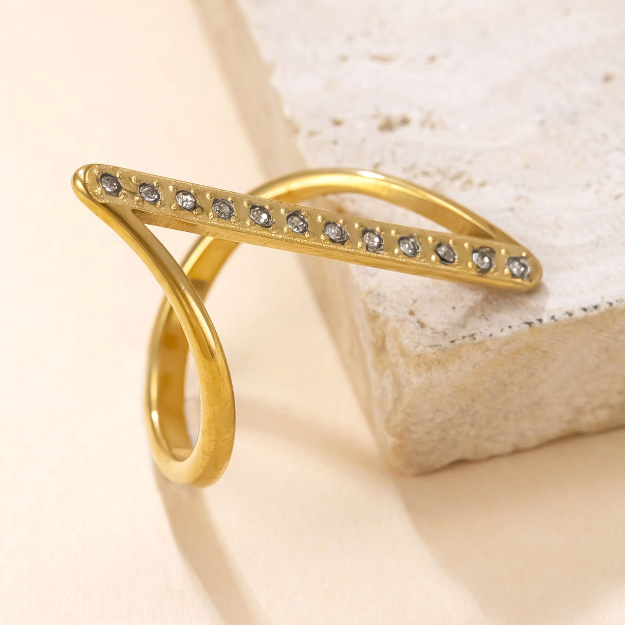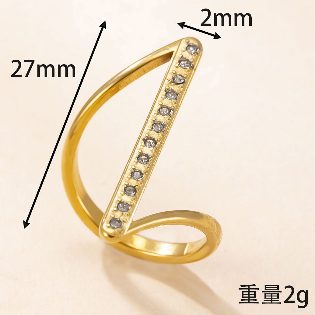 欧美跨境新款戒指2mm微镶钻戒指女时尚设计感镀18k金钛钢饰品厂