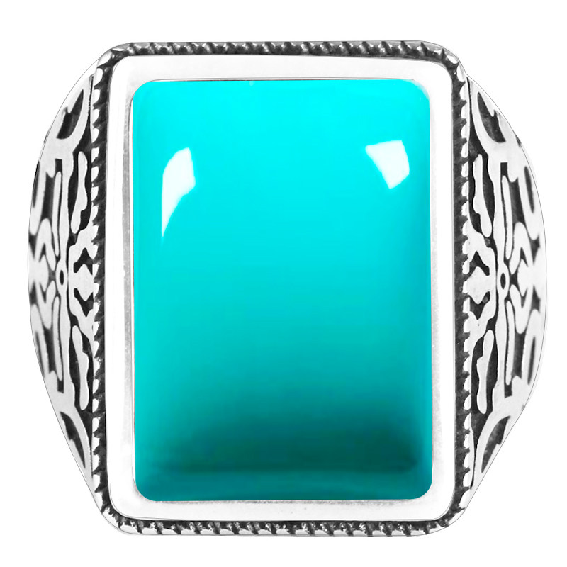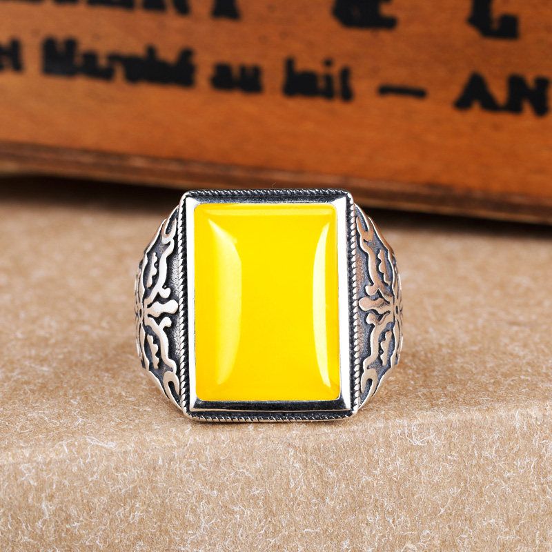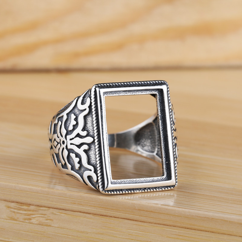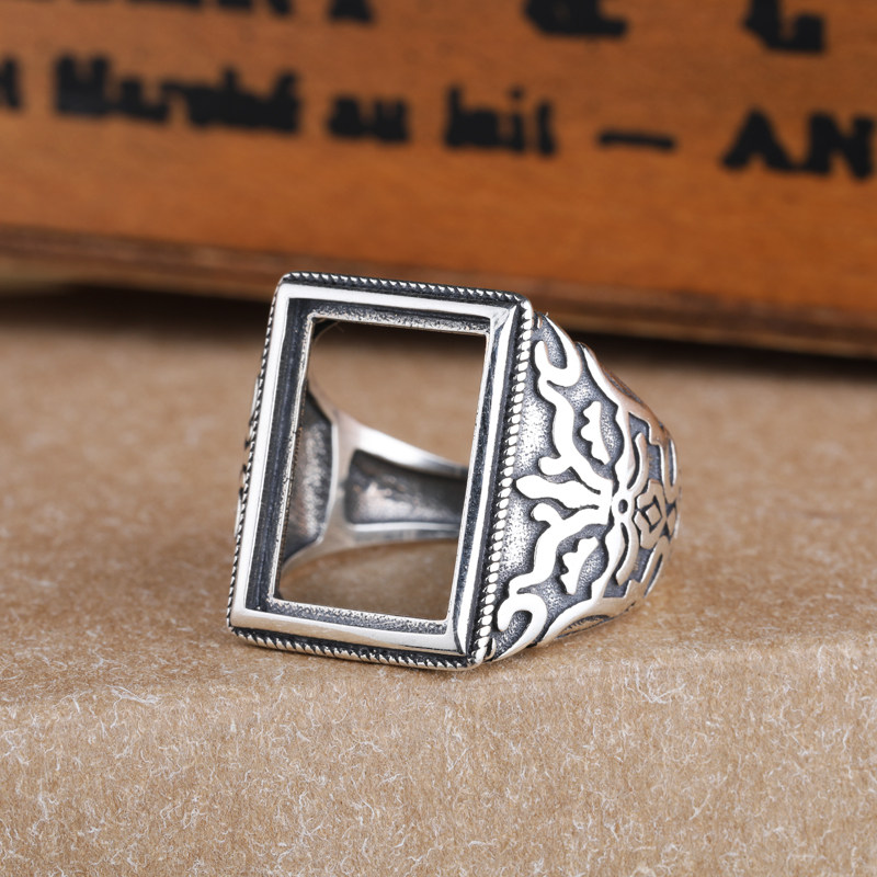 S925纯银戒指空托男士diy镶嵌蜜蜡琥珀绿松石戒面长方形戒托12*17