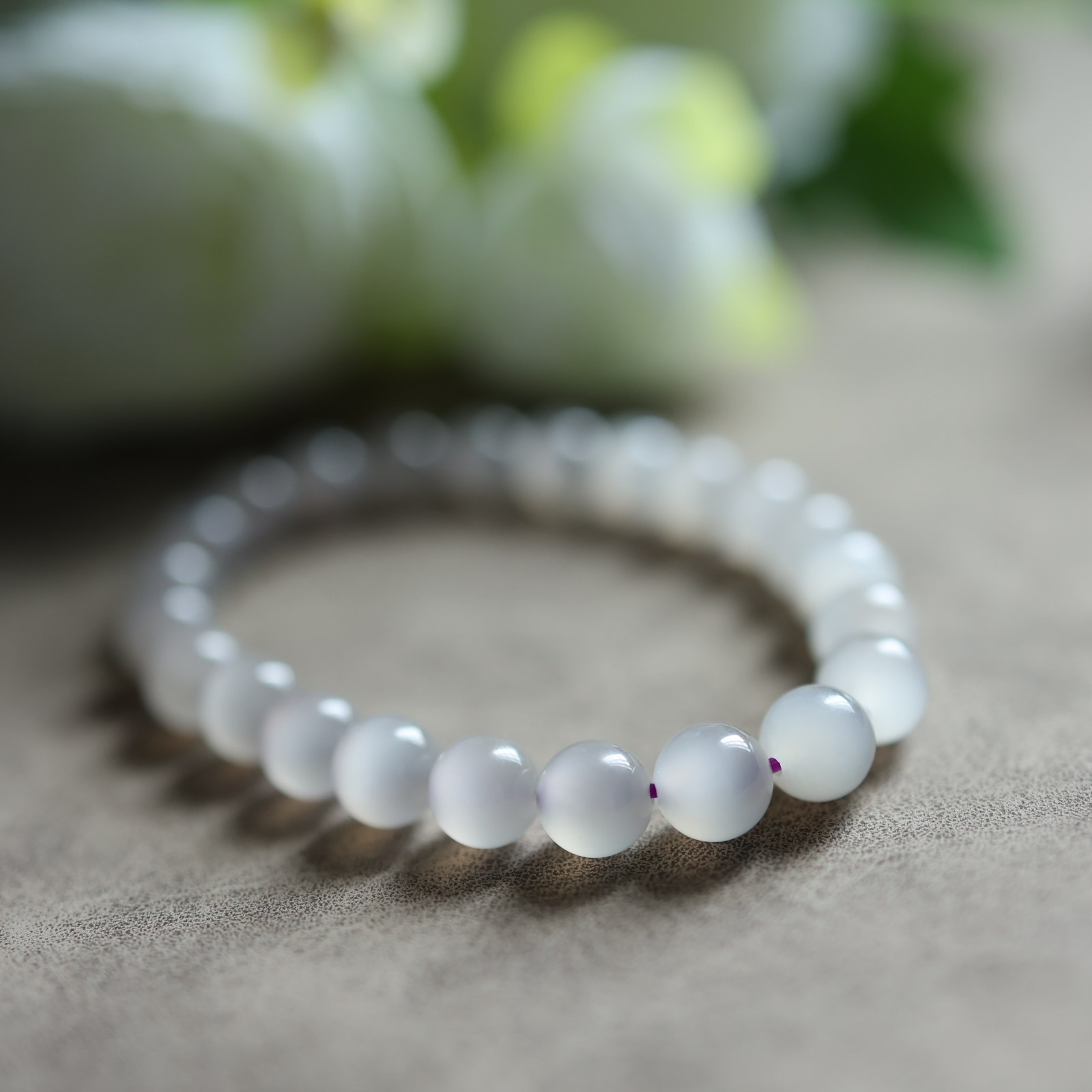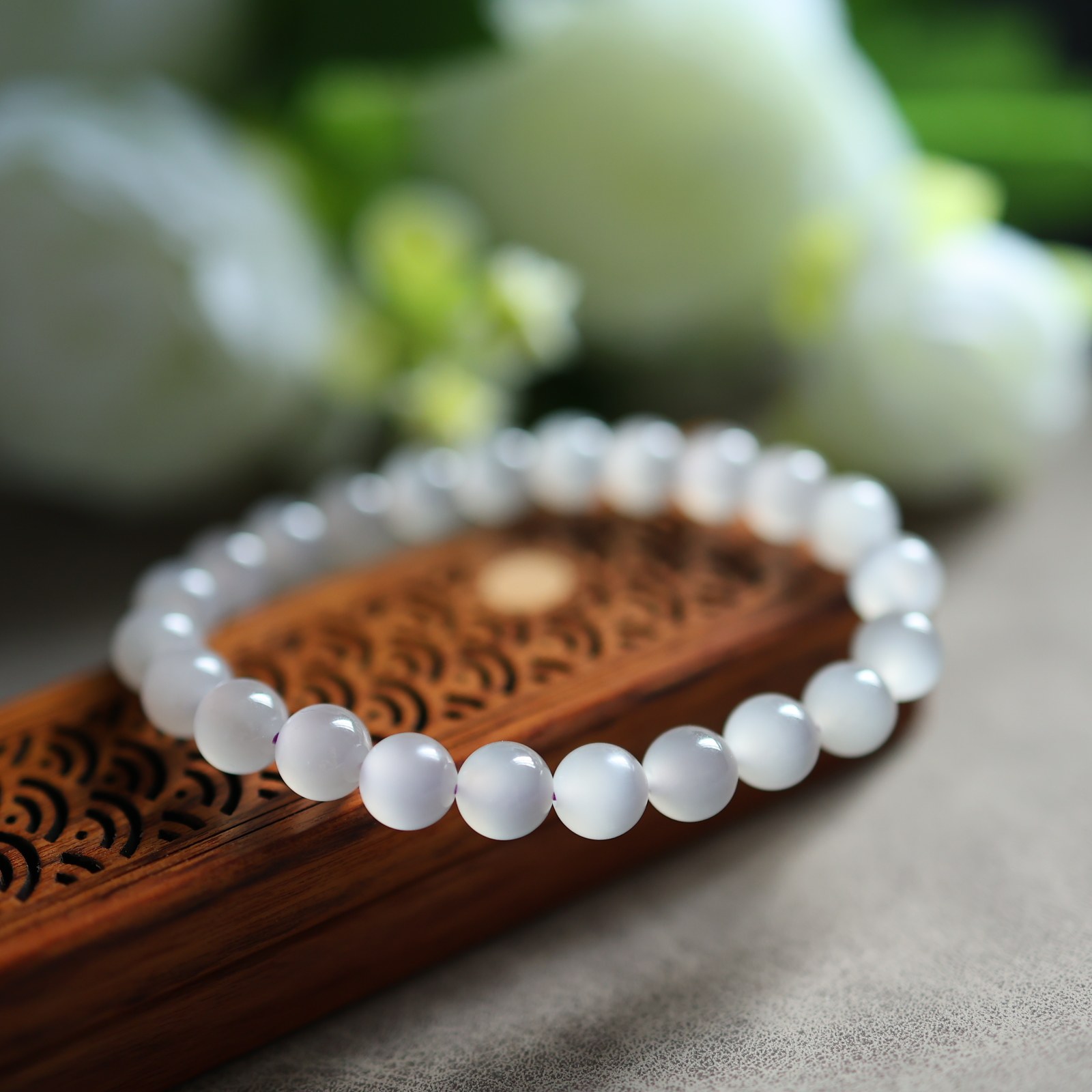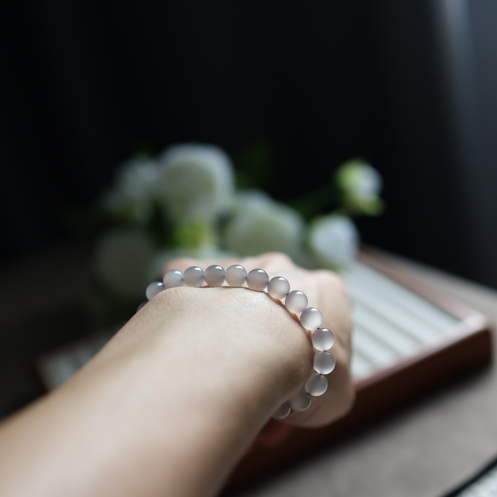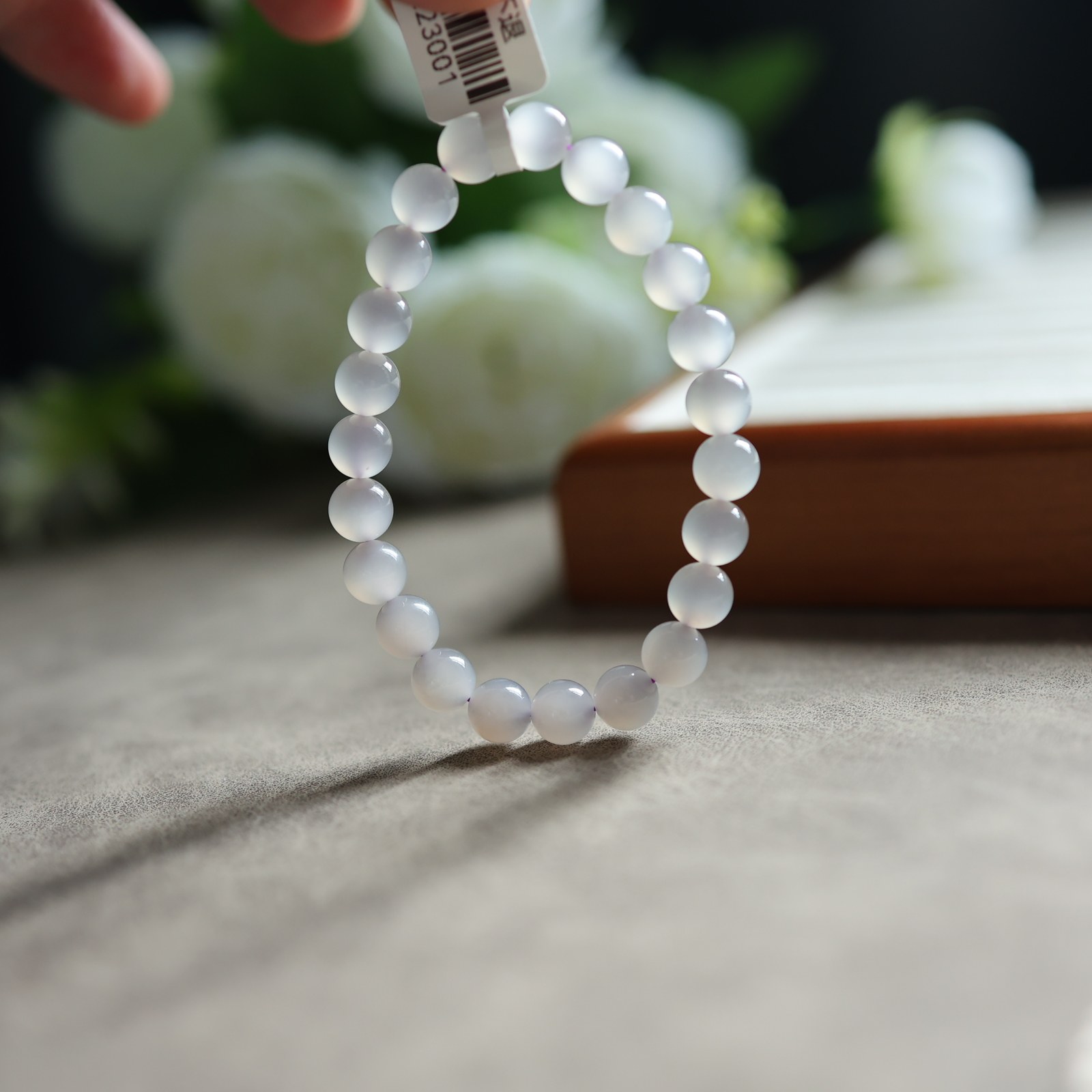 和田玉冰烟紫猫眼手串渐变意境猫眼圆珠手串青海老料冰透灵润8mm