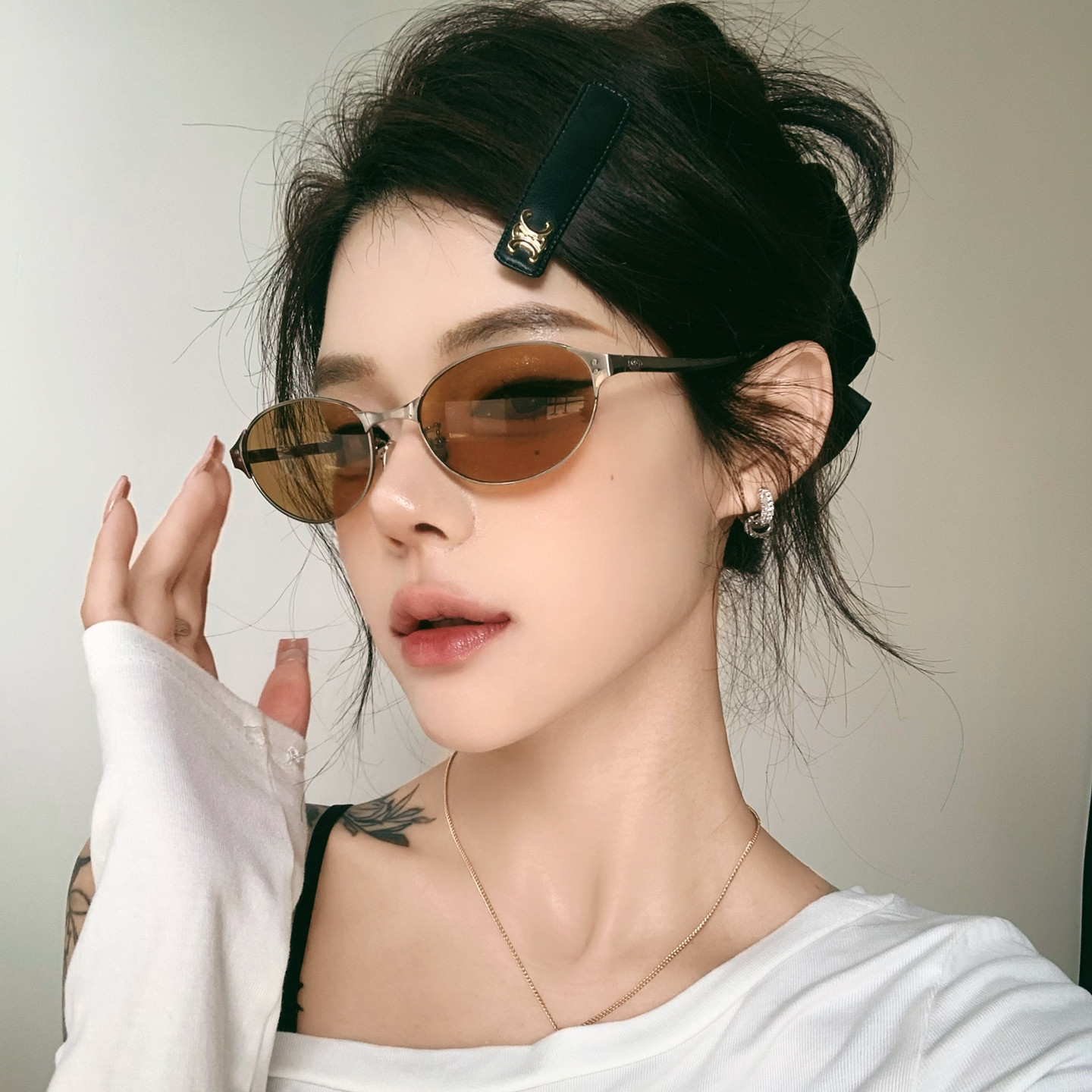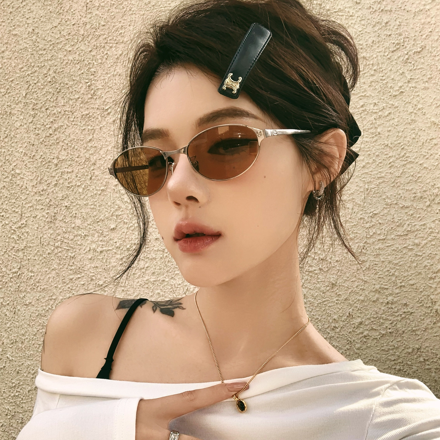 复古欧美金属老钱风墨镜女透明灰色高级感方圆脸显瘦猫眼太阳镜潮
