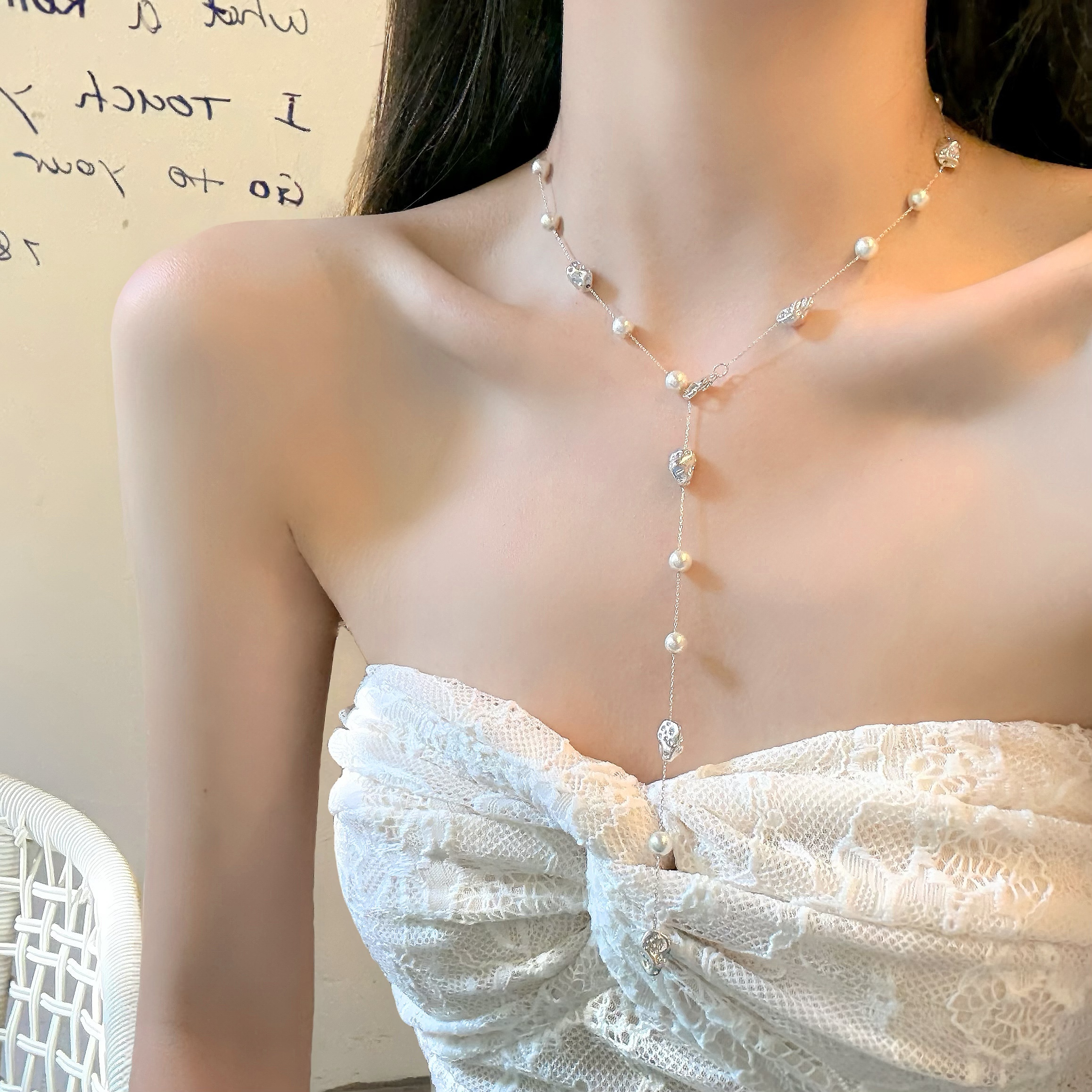 【蜜桃茶】夏日恋曲 长款满天星珍珠项链法式高级设计感颈链配饰