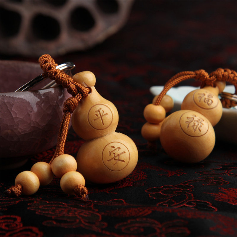 天然桃木雕刻葫芦钥匙扣小挂件一生平安福禄汽车礼品男女随身饰品