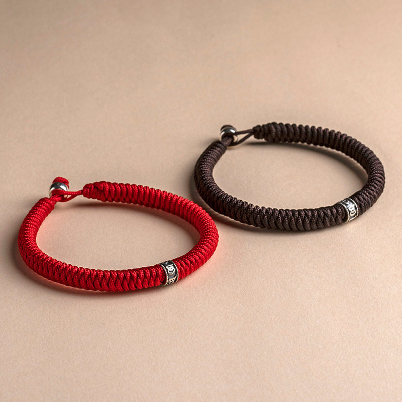 红色红绳子手链男女通用简约编织手绳可调节红色素绳