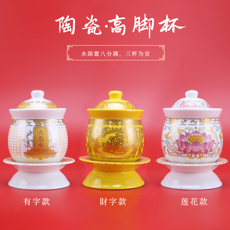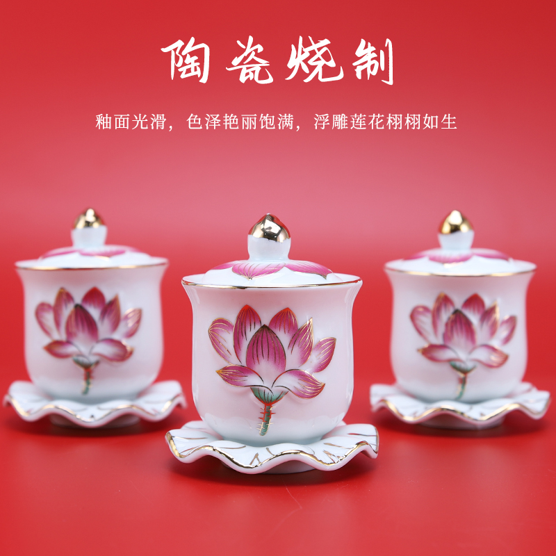 供水杯供佛杯佛前陶瓷莲花圣水杯净水杯供杯小号观音水杯佛杯供佛