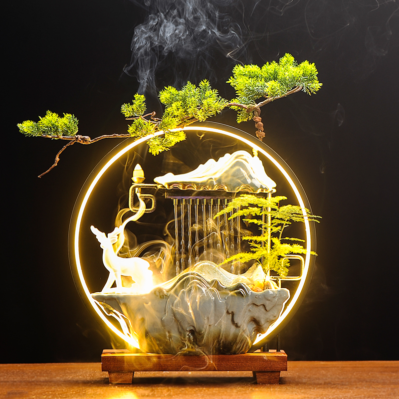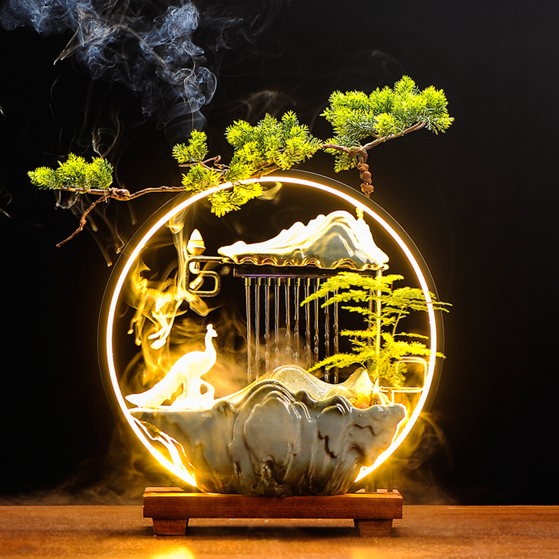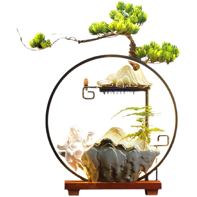 中式禅意循环流水喷泉招财摆件客厅办公室桌面雾化加湿器开业礼品