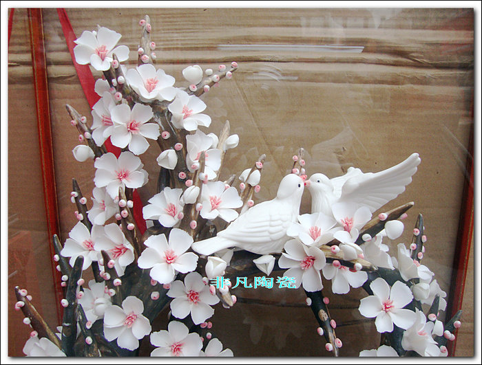 景德镇非凡陶瓷 陶瓷雕塑品艺术品 喜上梅梢 摆件 结婚礼品