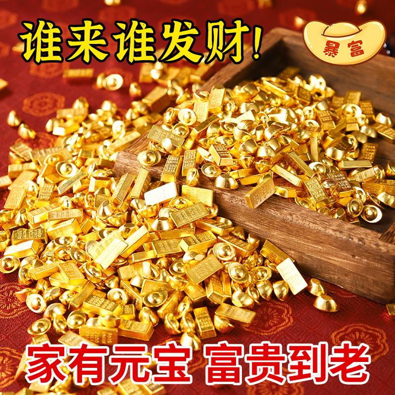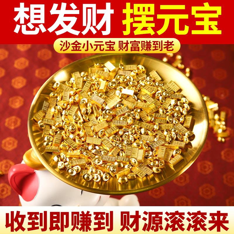 招财金元宝小金条摆件聚财办公室迷你工位黄铜聚宝盆创意配件沙金