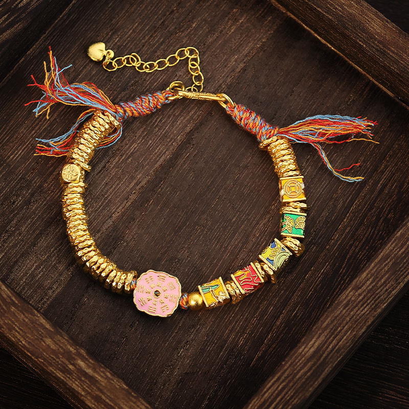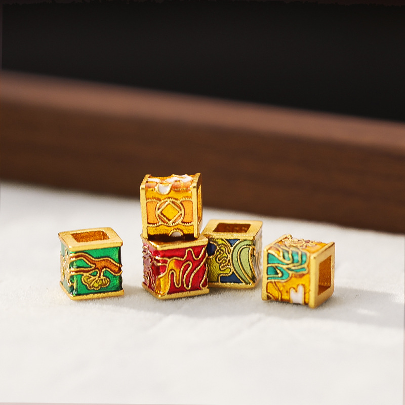 保色沙金古法金木水火土烧蓝通孔手串珠钱币盘缠手链DIY配件饰品
