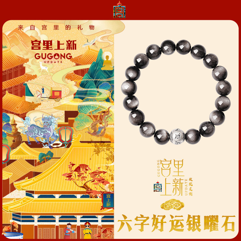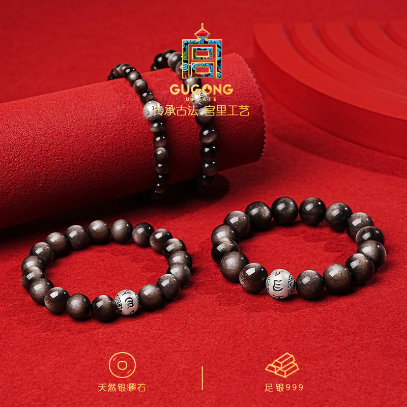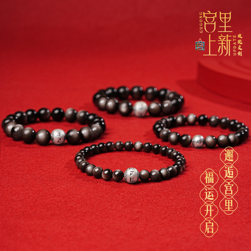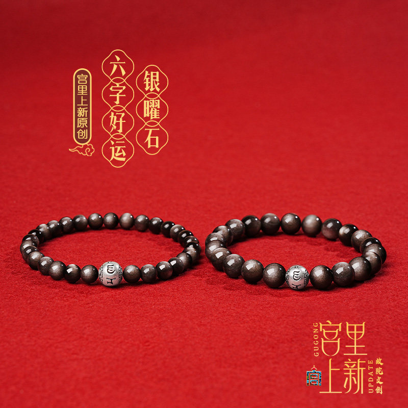 宫里上新黑曜石手串男天然银曜石水晶手链女正品生日本命年礼物
