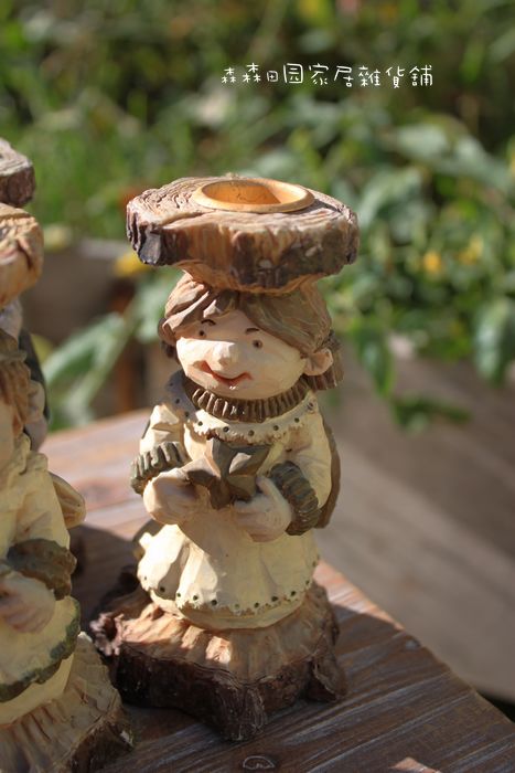 外贸仿木雕木刻天使人偶娃娃烛台儿童房卧室餐厅创意家居装饰摆件