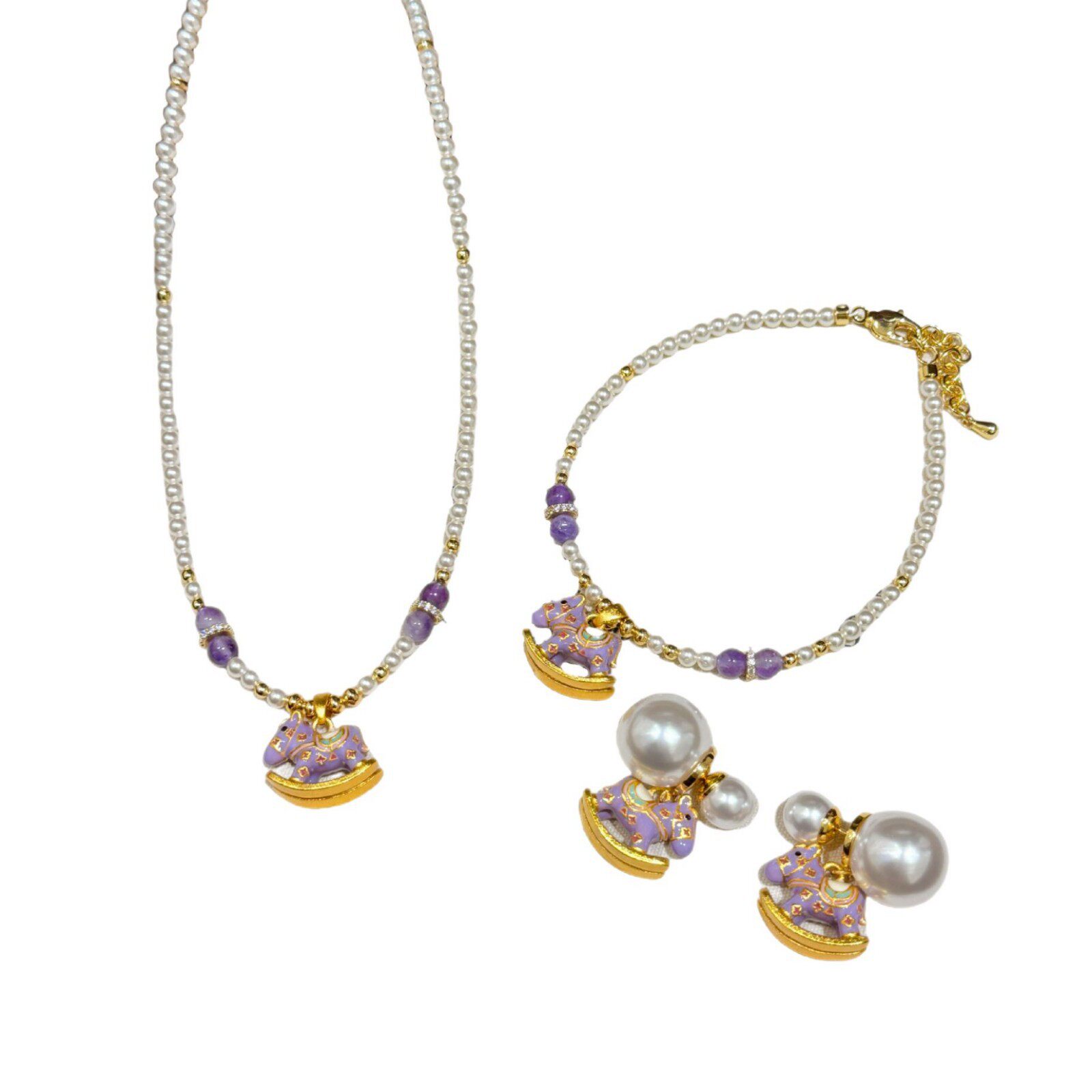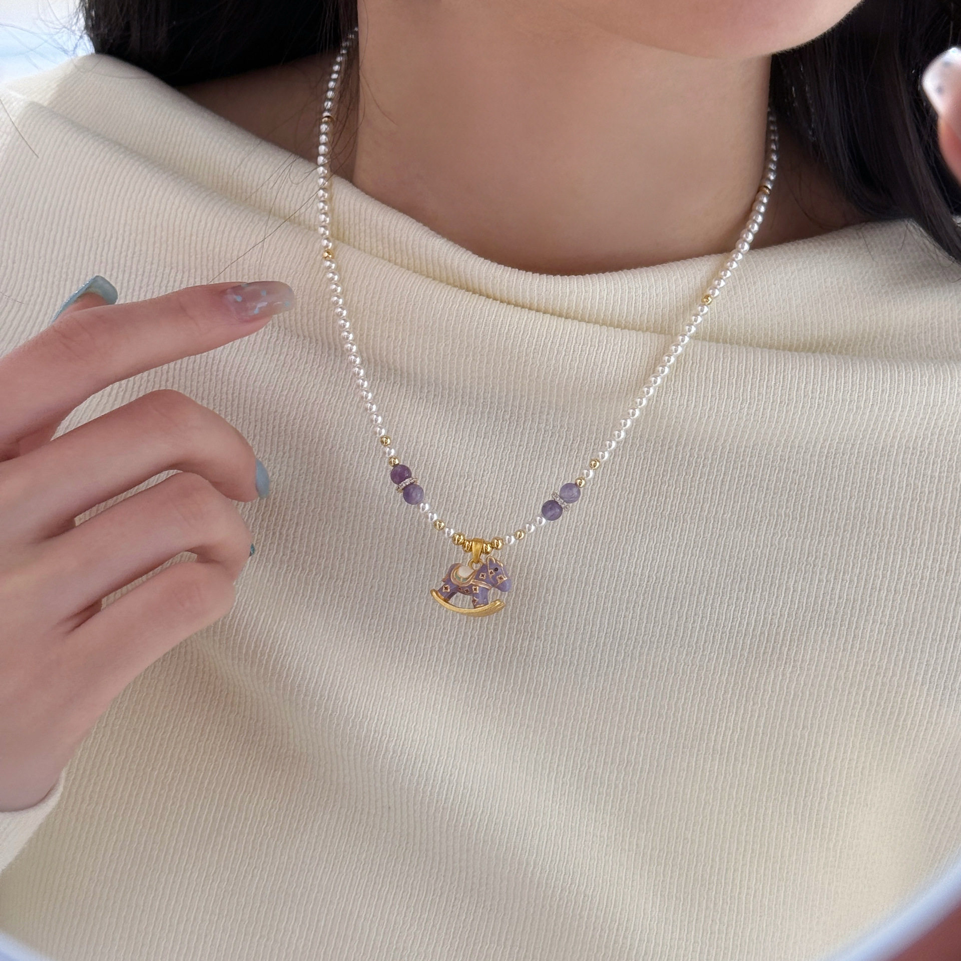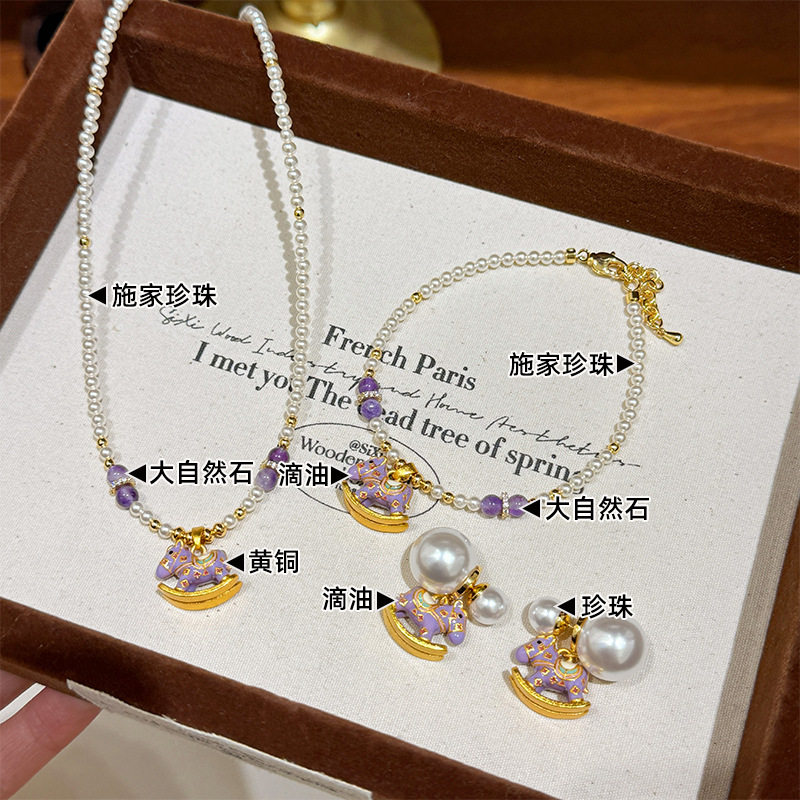 原创时尚清新紫色滴油木马施家珍珠项链轻奢小众气质百搭锁骨链女