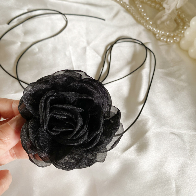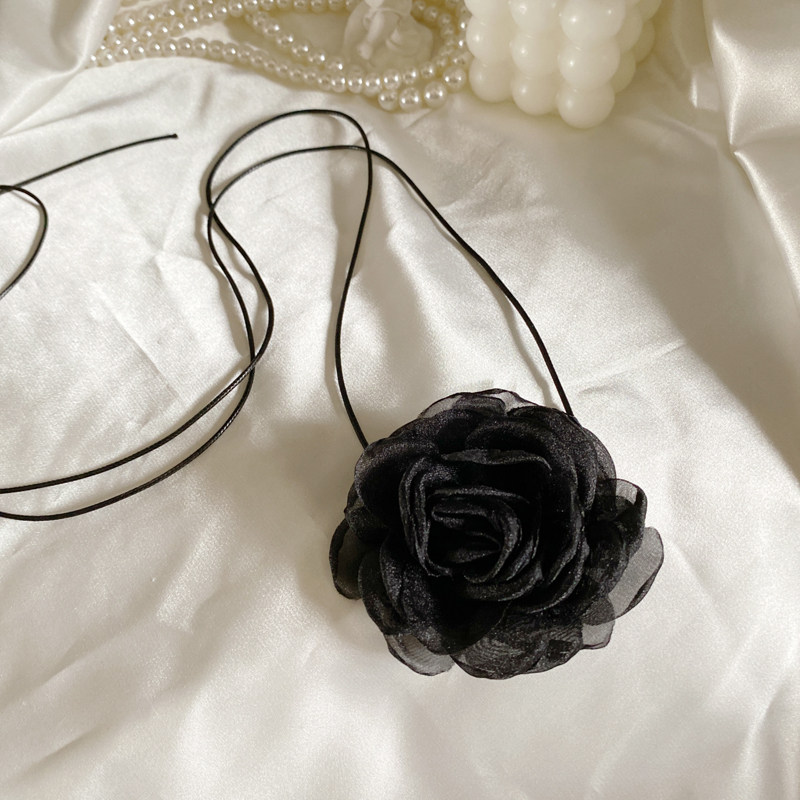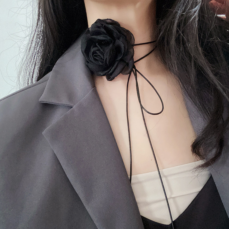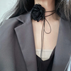 冷淡风小香风黑色晚宴绢纱花系带choker项圈超仙女性感颈带项链