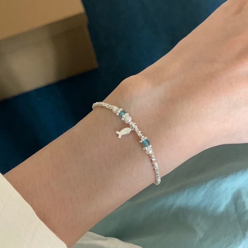 蓝色水晶小鱼手链轻奢小众精致百搭高级感手饰女闺蜜叠戴礼物串珠